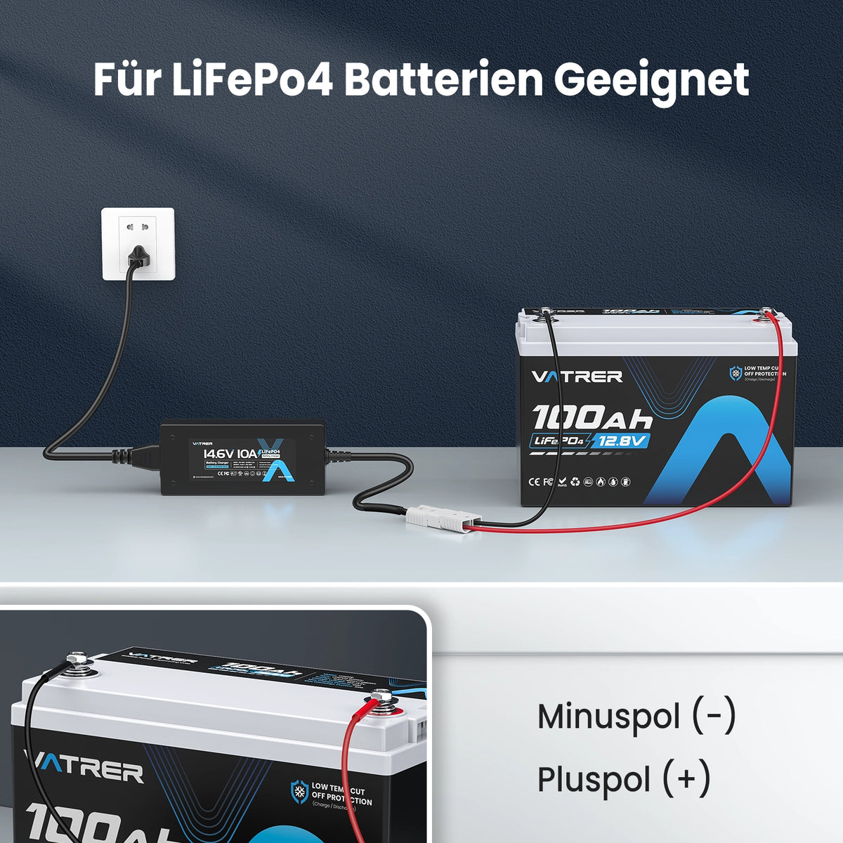 Vatrer 14,6 V 10 A Intelligentes AC-DC-Ladegerät für 12 V Lithium-Eisenphosphat EU