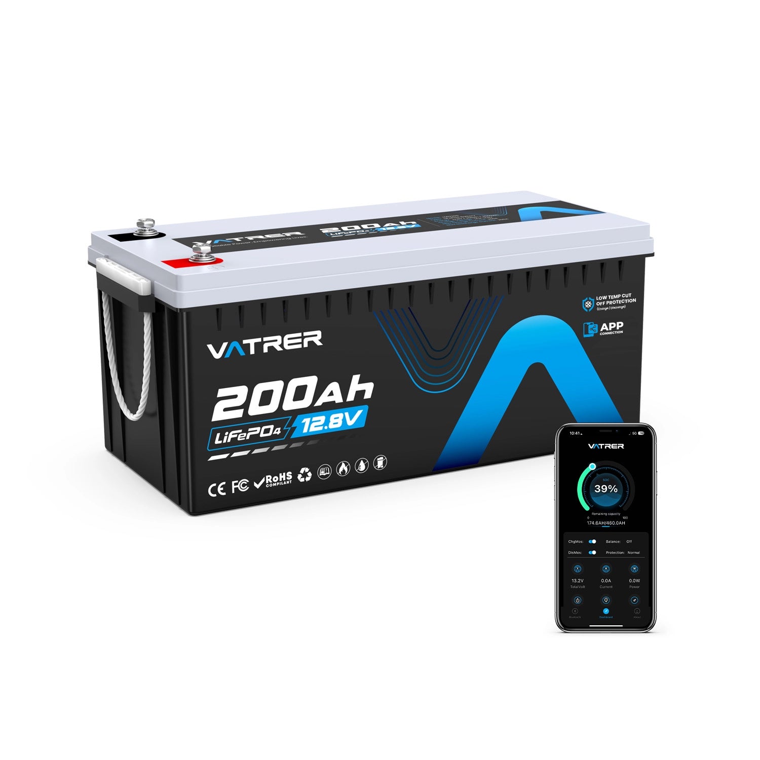 Vatrer 12V 200Ah Plus Lithiumbatterie mit Bluetooth 200A BMS EU