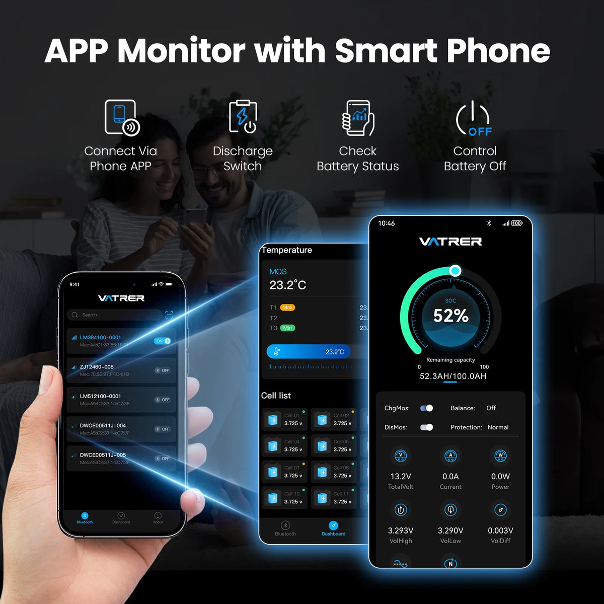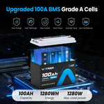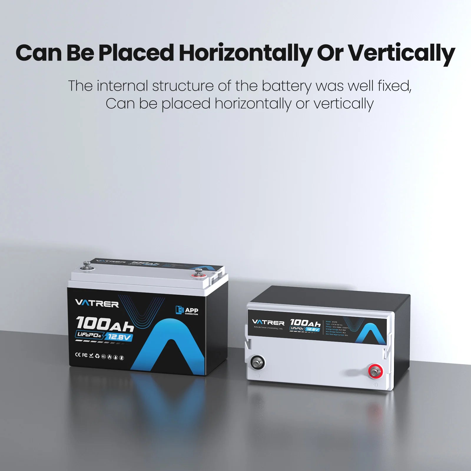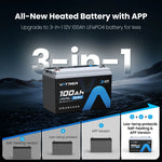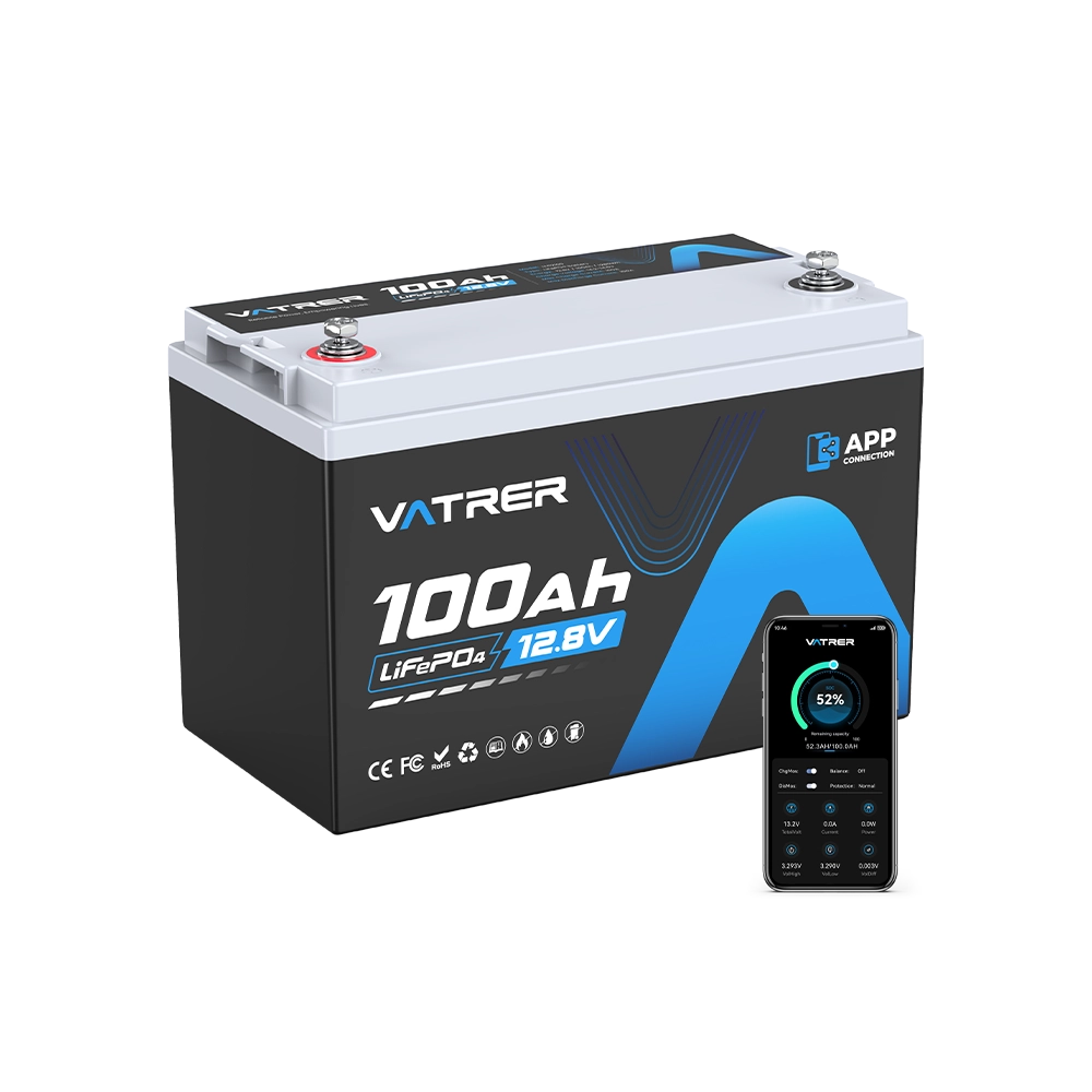 Vatrer 12 V 100 Ah LiFePO4-Lithium-Akku mit Bluetooth, Abschaltung bei niedriger Temperatur und integriertem 100 A BMS