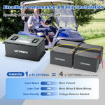Experience the unrivaled power and longevity of the Vatrer 48V 105AH LiFePO4 Heated Lithium Golf Cart Battery. With 10.24kW continuous load power, 5.376kWh usable energy, and 4000+ deep cycle life, this Grade A cell battery is designed to elevate your golf cart performance to new heights.