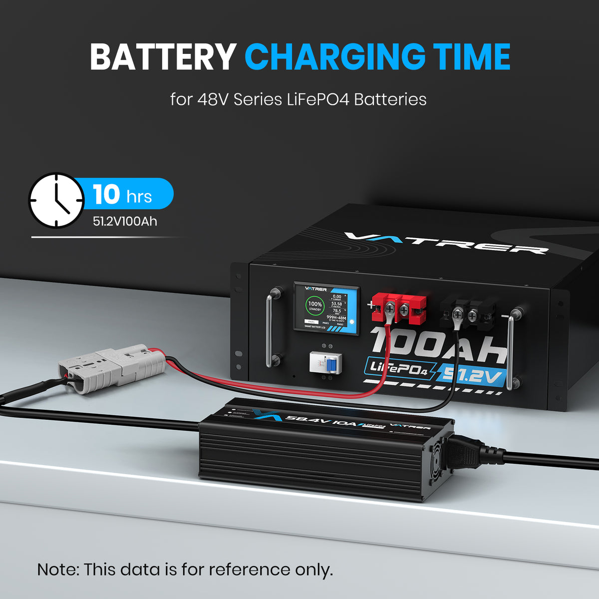 Vatrer 48V Lithium Battery Charger, 58.4V 10A AC-DC LiFePO4 Smart Battery Charger CA
