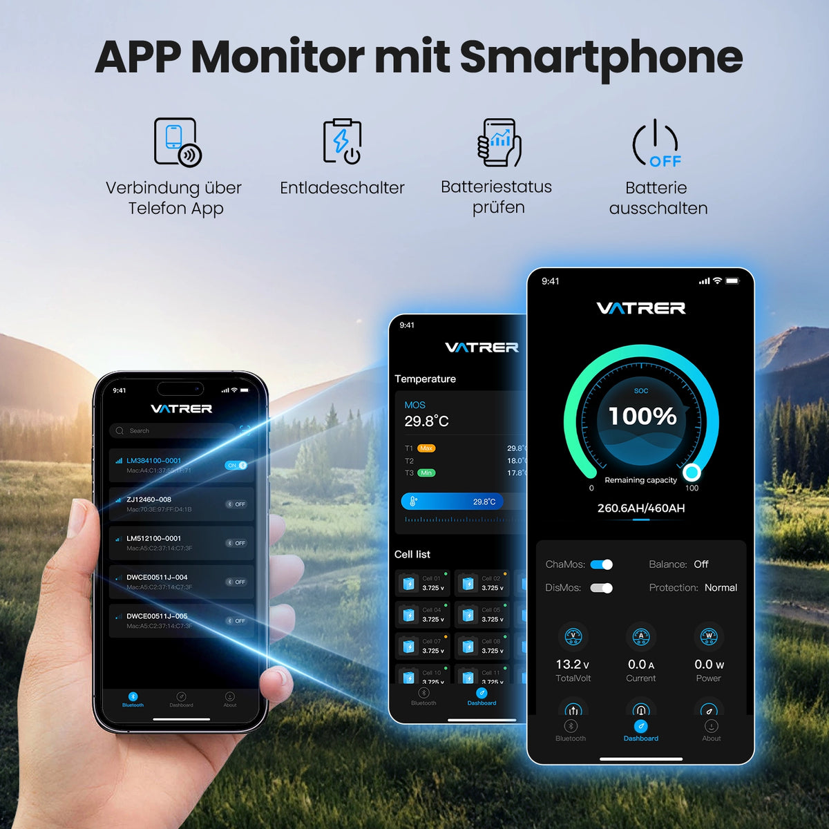 Vatrer 12V 230AH RV Battery Bluetooth Version, 200A BMS, Low Temp Cutoff, LiFePO4 Chemistry EU