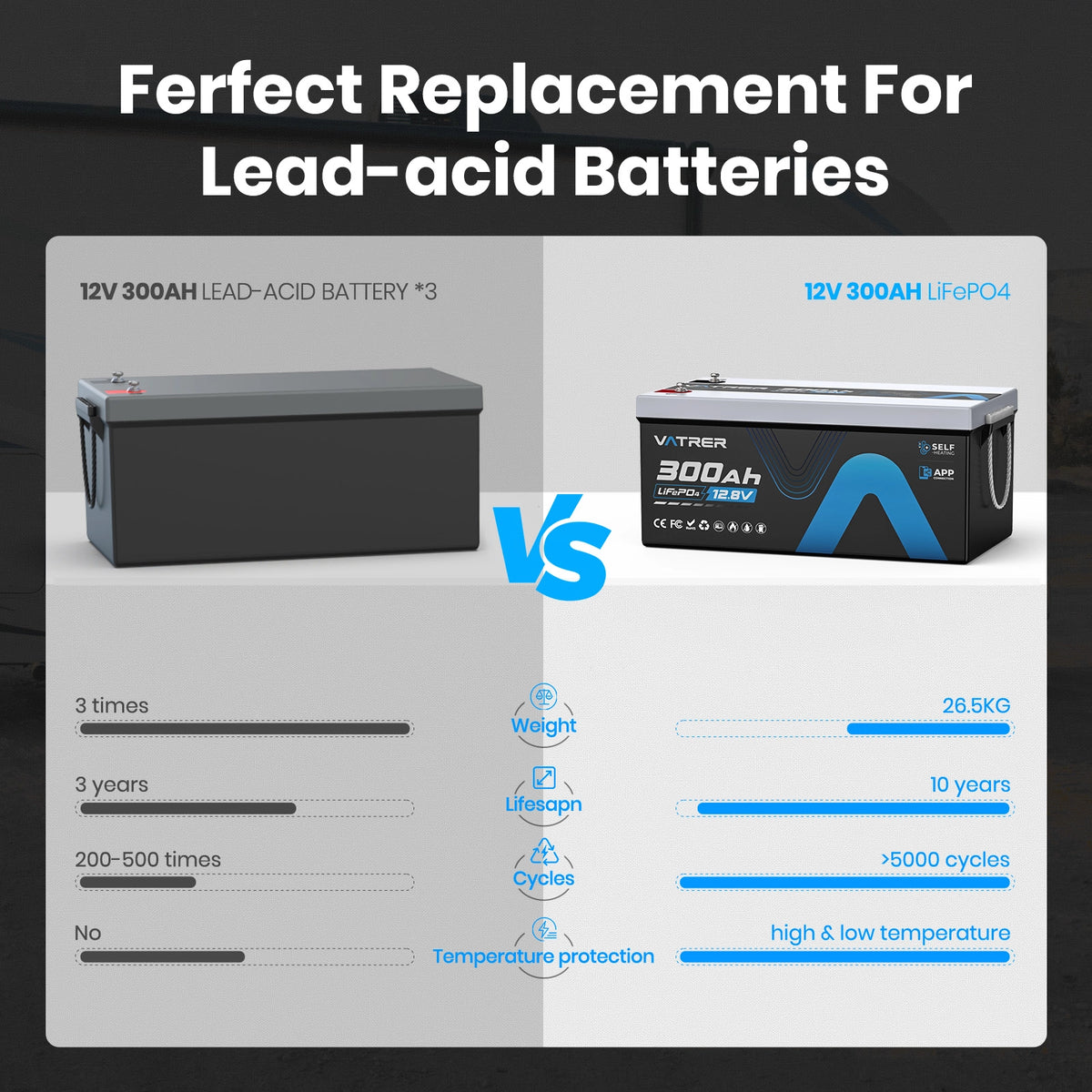 Unlock the true potential of boat energy storage, off-grid systems, camping & RV adventures, and solar power with the Vatrer 12V 300Ah Bluetooth LiFePO4 Lithium Battery with Self-Heating. This exceptional battery offers a seamless user experience, outstanding performance, and a range of advanced features that make it the perfect choice for various applications. Let's explore the remarkable qualities of the Vatrer Battery and how it enhances your power needs: