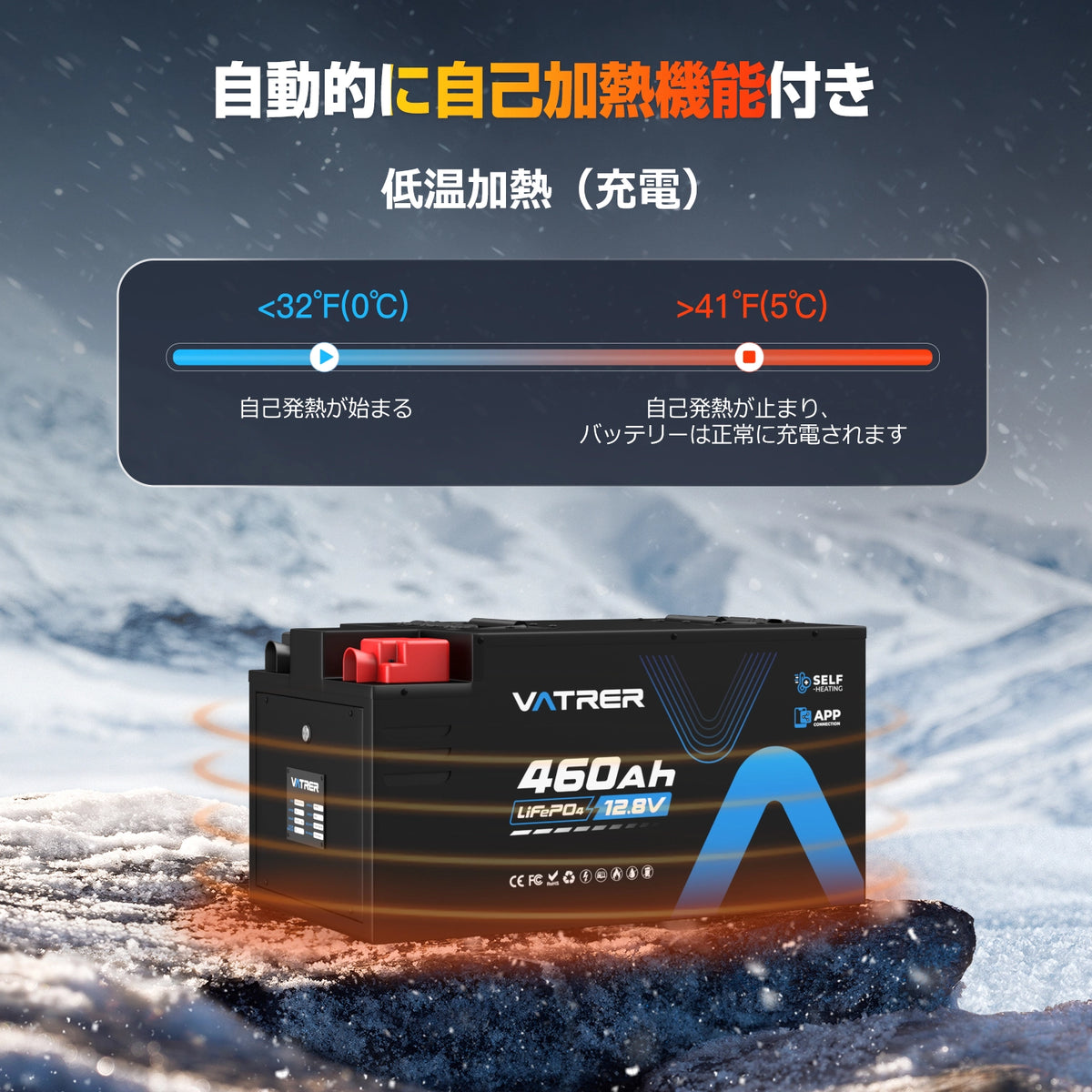 バッテリーモデル 自己加熱機能付きLiFePO4バッテリー 12.8V 460Ah