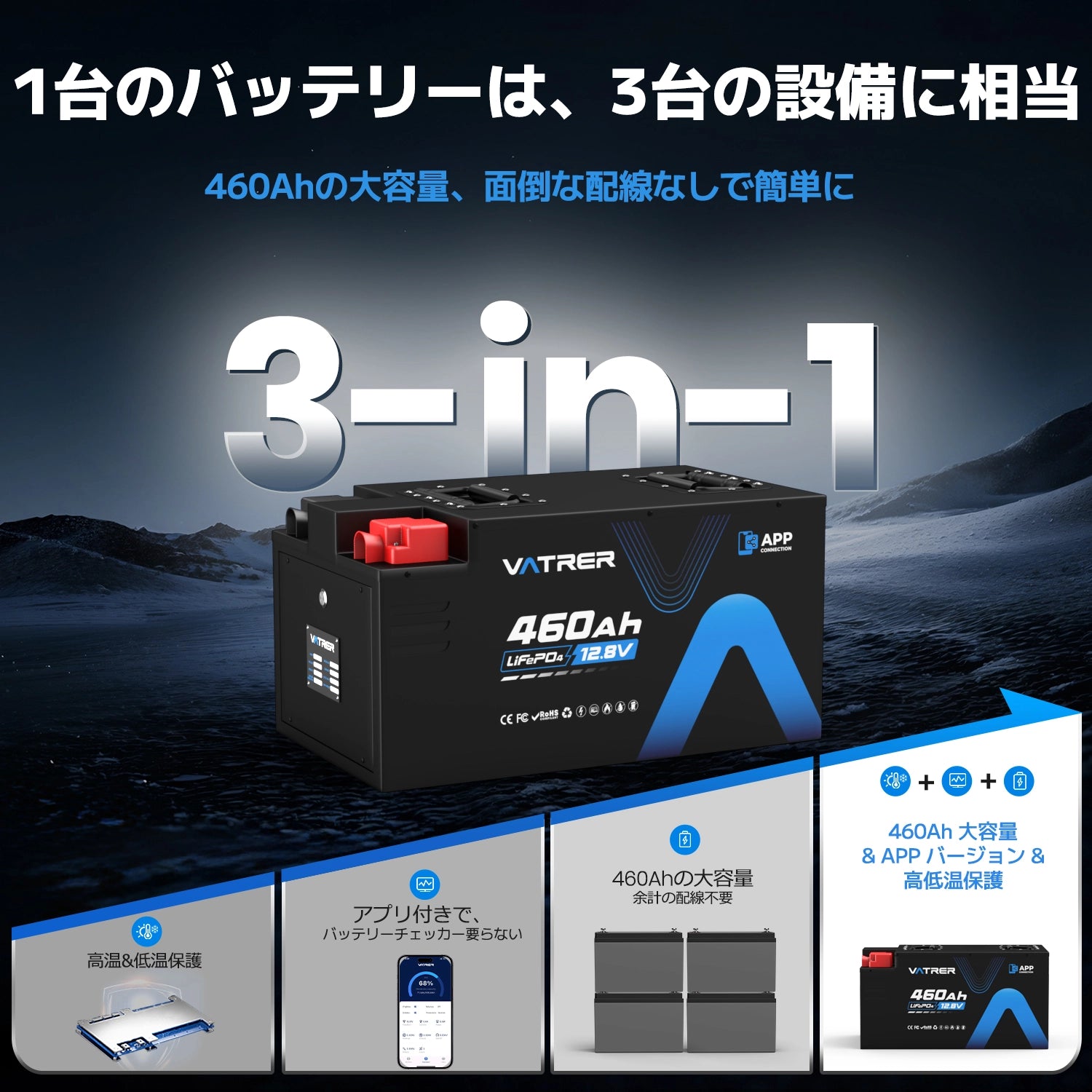● 460Ahのパワーモンスター:あらゆるニーズ電力に対応する超大容量。