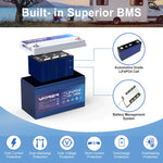 Vatrer ディープ サイクル LiFePO4 バッテリーには BMS が内蔵されており、優れた自己放電率で過充電、過放電、過電流、短絡から保護します。高温カットオフにより、167 °F (75 °C) を超える充電を防止します。および低温遮断保護。バッテリーがどのような状態であっても、充電すればすぐに使用できます。