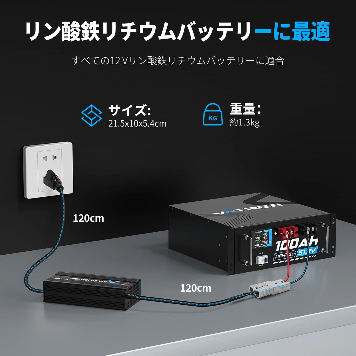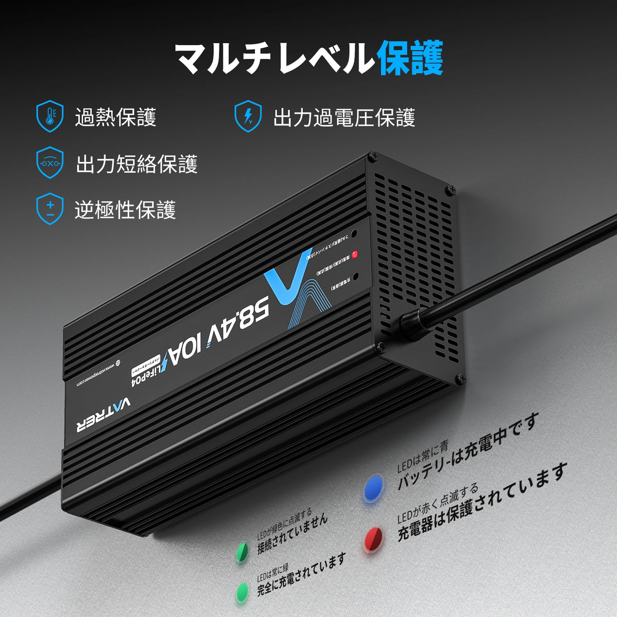 Vatrer 48V リチウム バッテリー チャージャー、58.4V 10A AC-DC LiFePO4 スマート バッテリー チャージャー