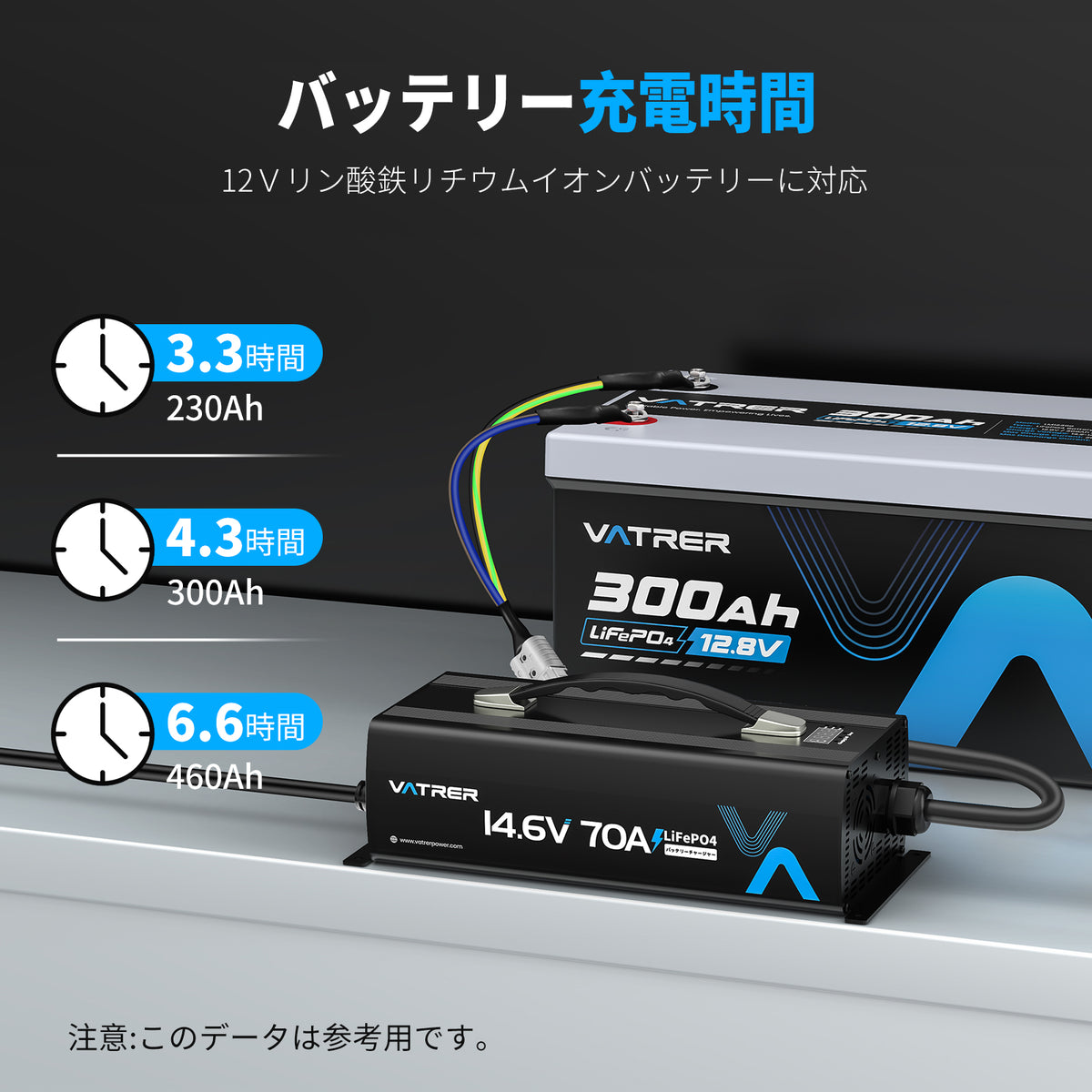 12V 70Aリチウム電池充電器でリン酸鉄リチウム電池を充電するのに必要な時間。
