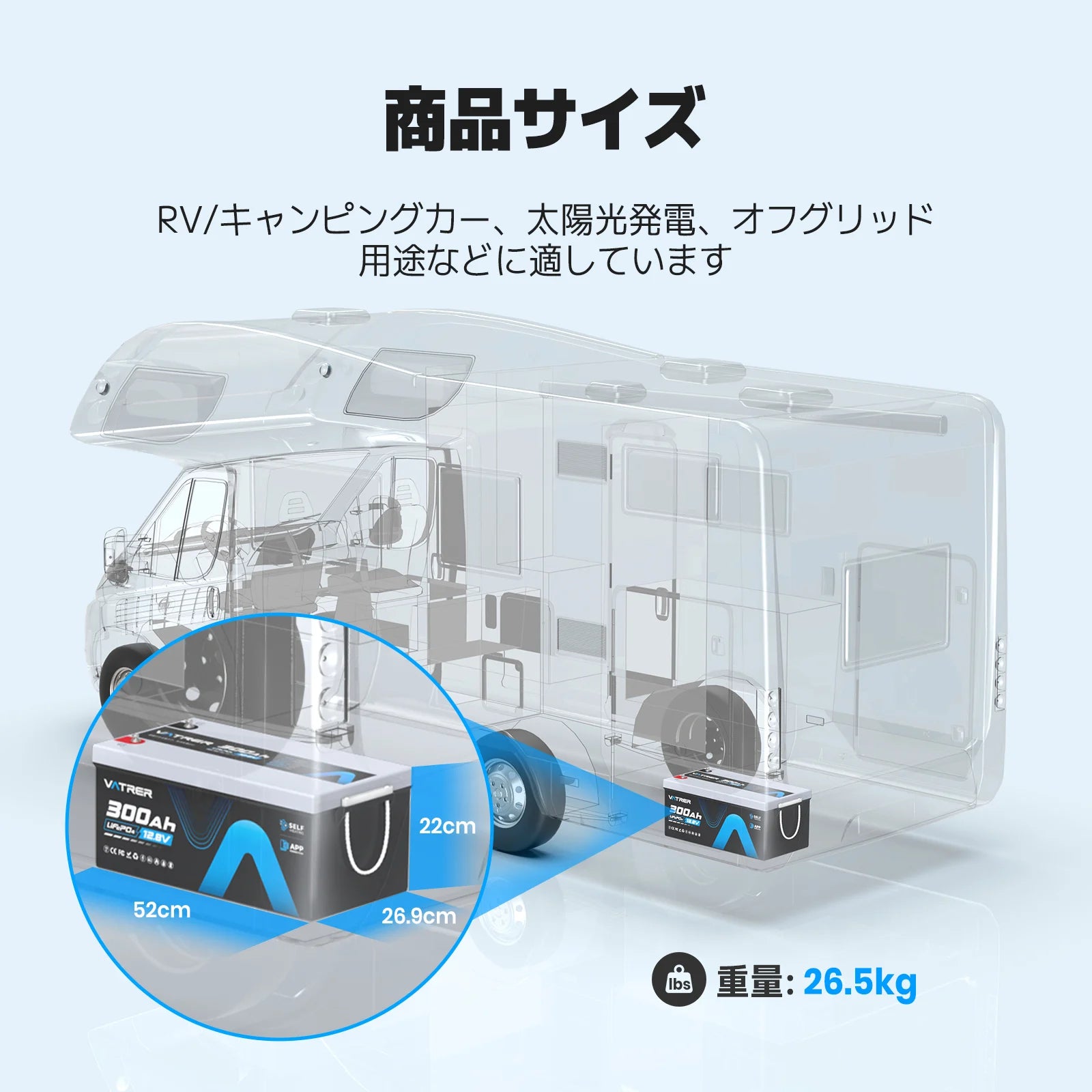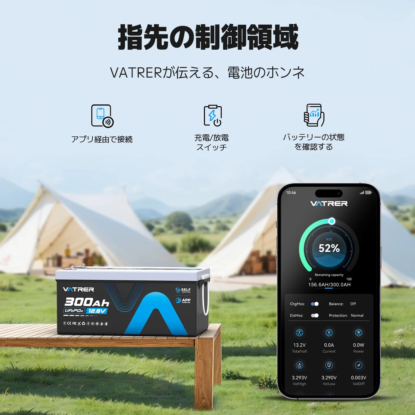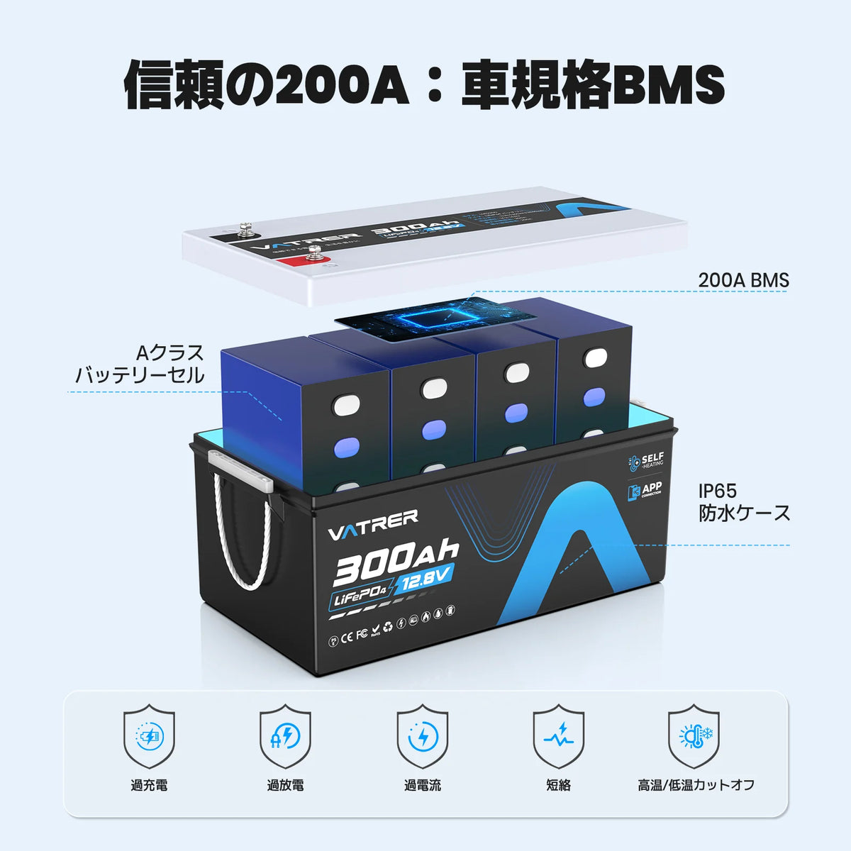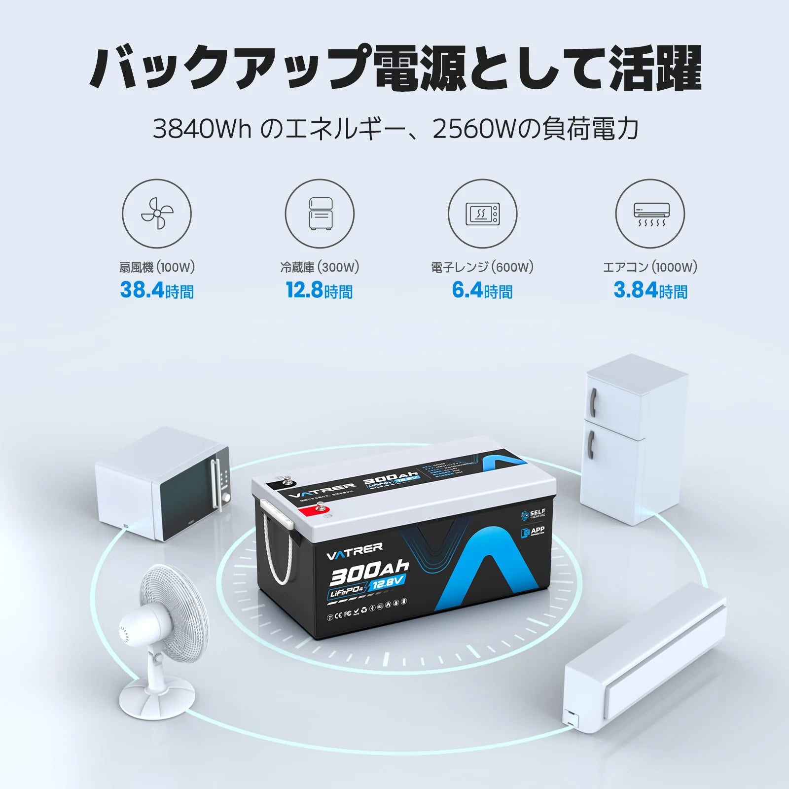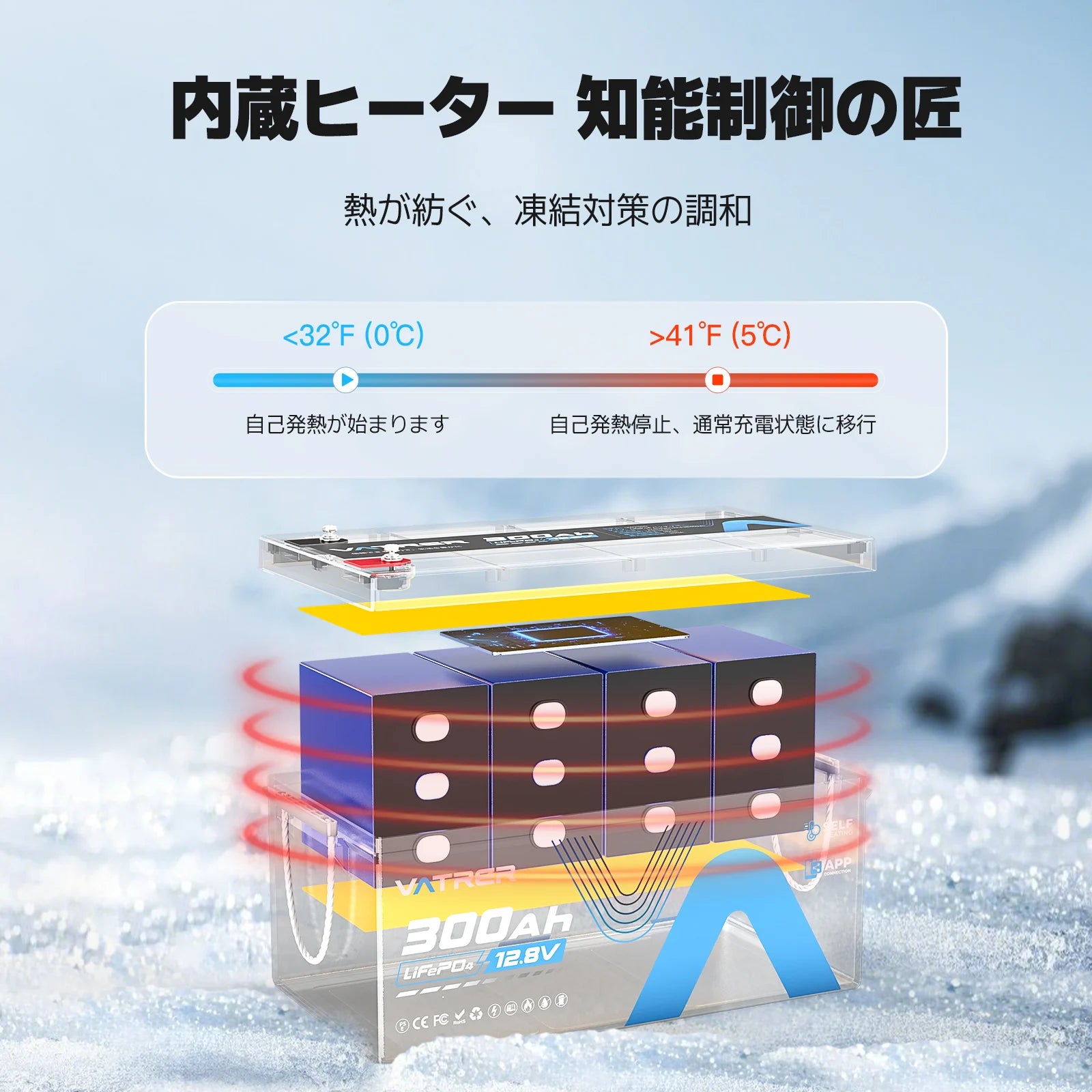 Vatrer 12V 300AH Bluetooth LiFePO4 リチウム電池(自己発熱機能付き)JP