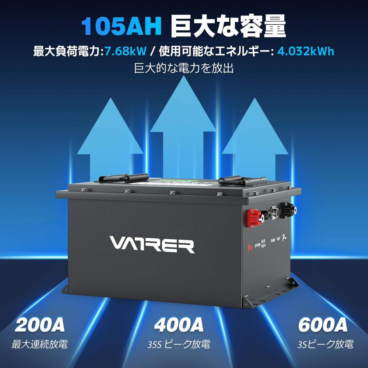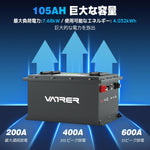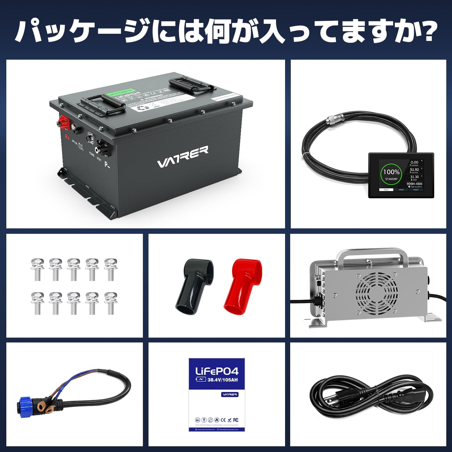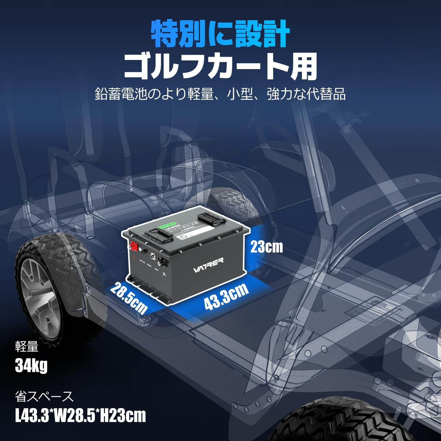 Vatrer 36V 105AH リチウム ゴルフ カート バッテリー、200A BMS、4000+ サイクル、最大 7.68kW 出力リチウム バッテリー JP
