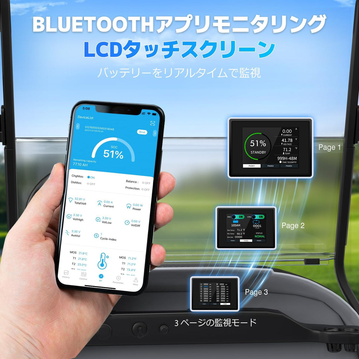 • 過充電、過放電、過電流、高温・低温、短絡保護を備えた200A BMS内蔵