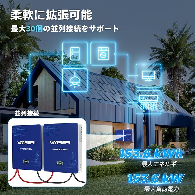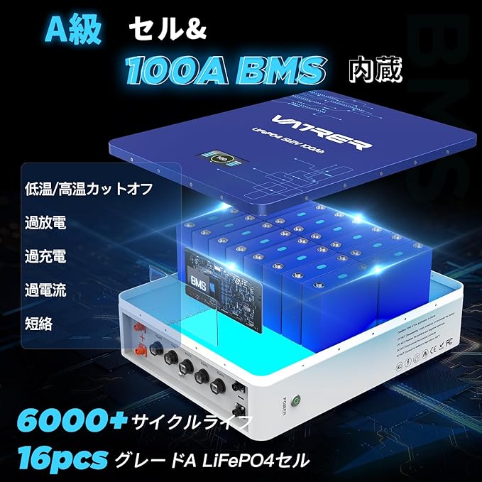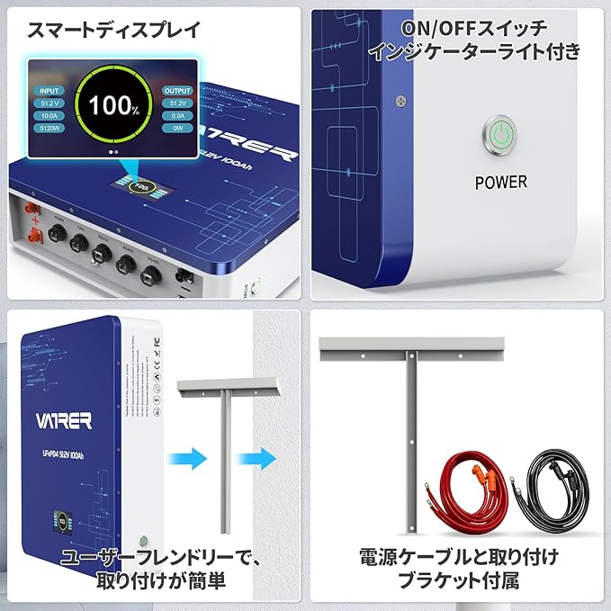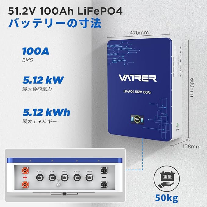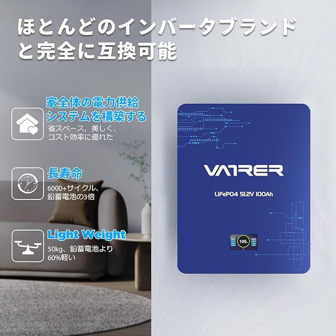 Vatrer 51.2V 100Ah 壁掛けリチウムソーラーバッテリー JP