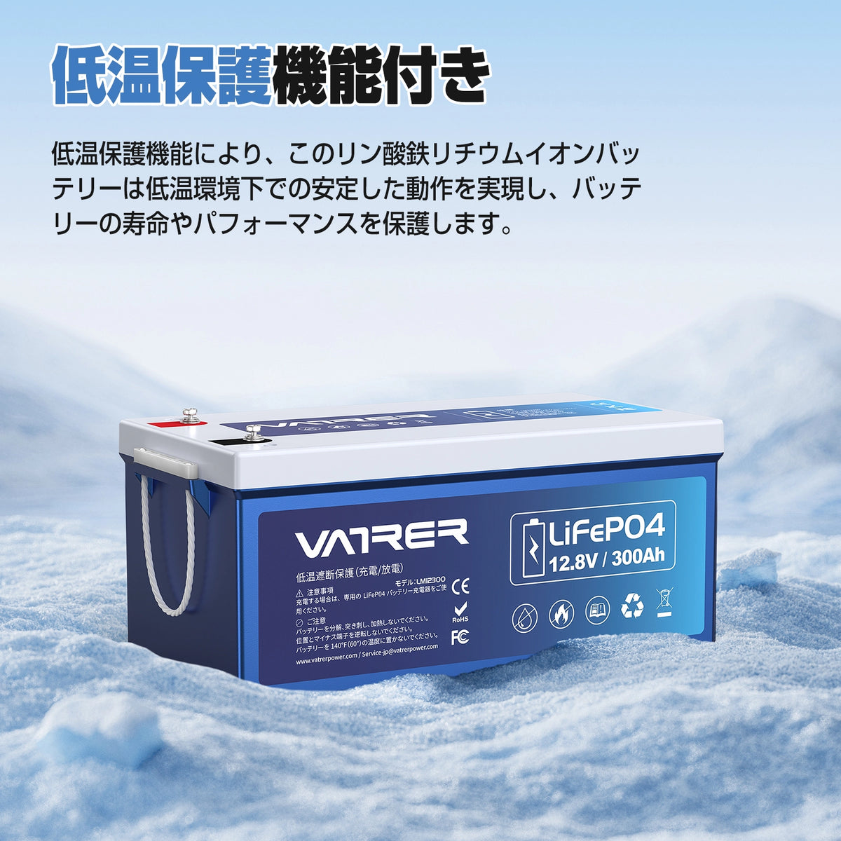 Vatrer 12V 300Ah SMART & Low Temp LiFePO4 バッテリーの信頼性とインテリジェンスを体験してください。この優れたバッテリーは、極端な温度条件でも完璧に動作するように特別に設計されており、最も過酷な気候でも中断のない電力を確保します。 Vatrer Battery の注目すべき機能と、それが電力需要をどのように強化するかを見てみましょう。
