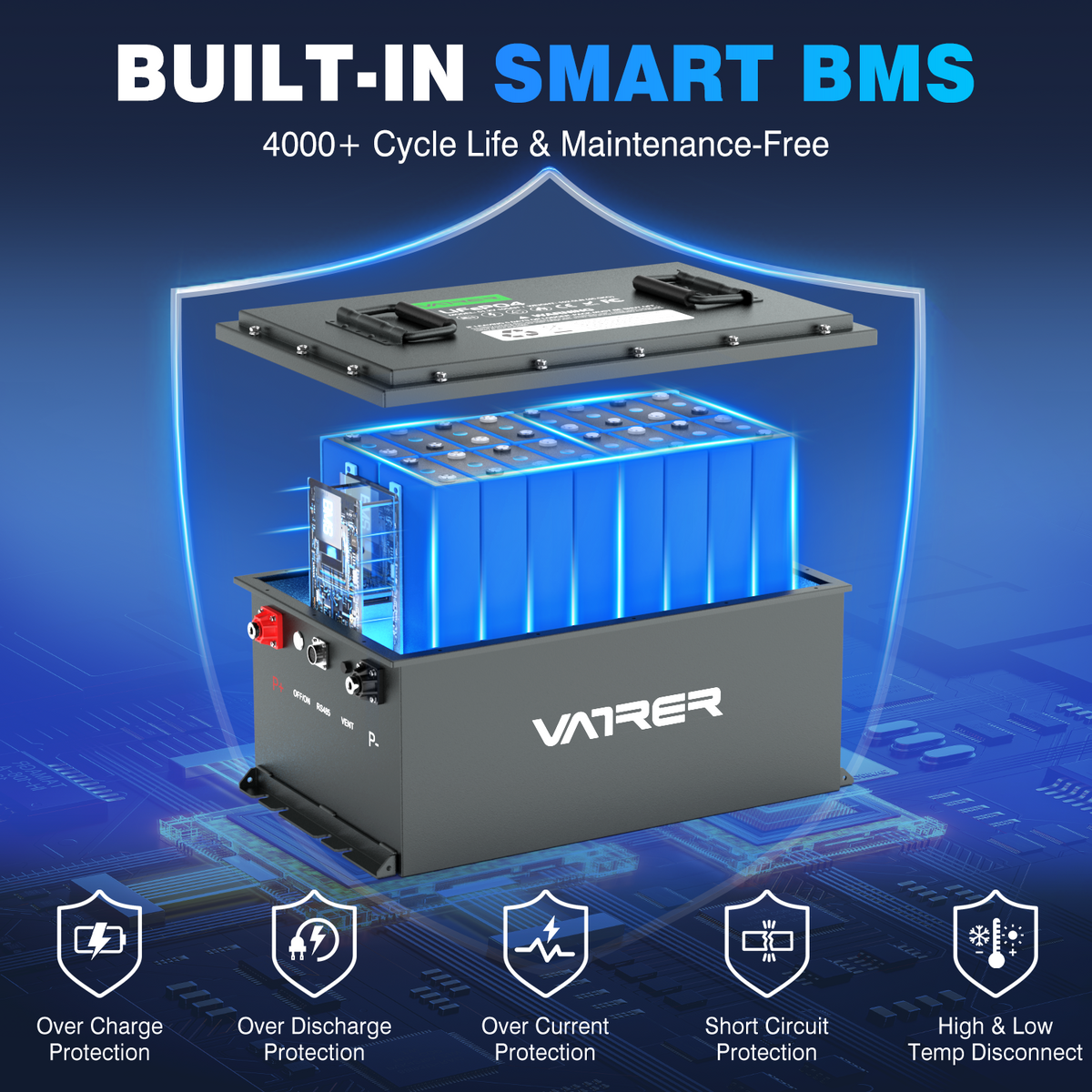 - 内蔵の 200A バッテリー管理システム (BMS) は、過充電/放電、過電流、高温/低温、短絡保護を提供します。