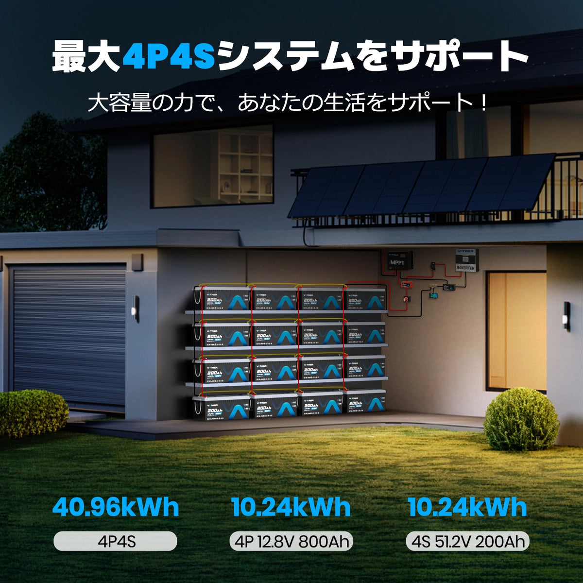 - 自動車グレードの LiFePO4 セルで製造されたリチウム バッテリーは、エネルギー密度が高く、メモリー効果がなく、より安定したパフォーマンスとより大きな出力を備えています。優れたサイクル性能、高速充放電、最大100%の充電効率、高出力。 IP65の防水性能と最大4直列・4並列までのバッテリー拡張に対応し、電力貯蔵に適しています。