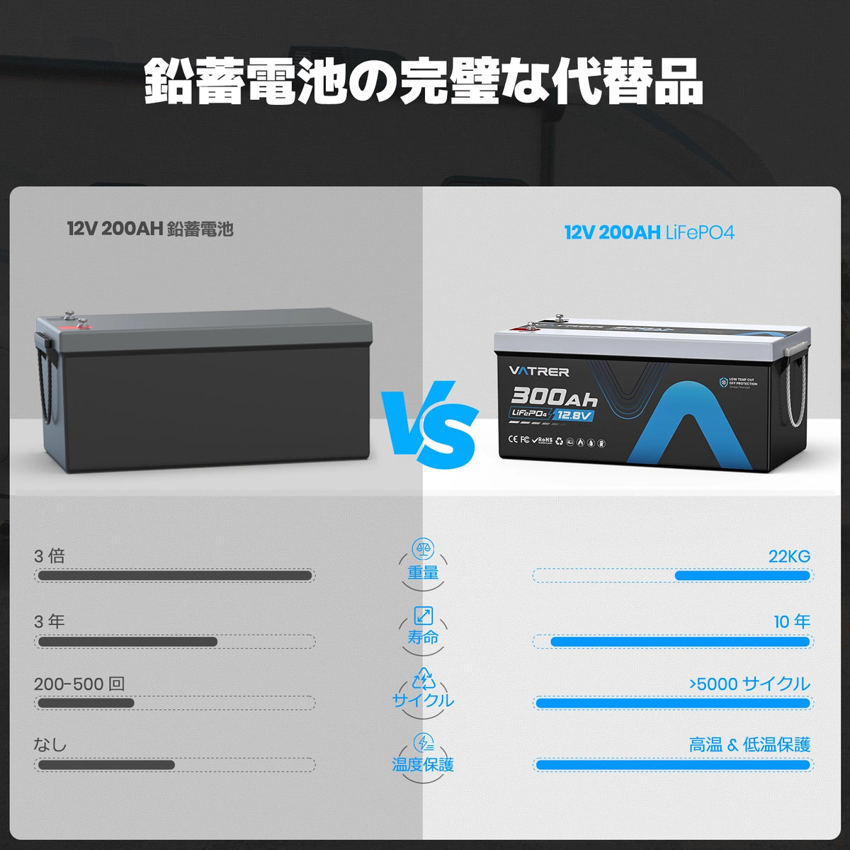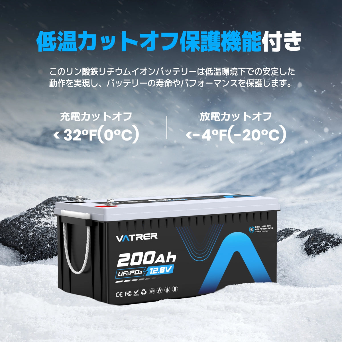Vatrer 12V 200Ah 200A BMS 低温カットオフ LiFePO4 リチウムバッテリー JP