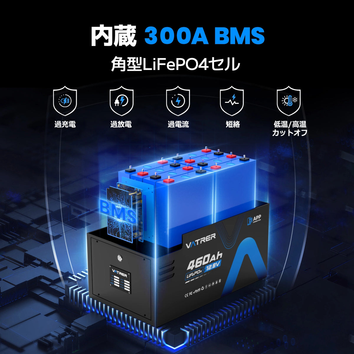 Vatrer 12V 460AH 300A BMS 低温カットオフ LiFePO4 RV バッテリー Bluetooth バージョン JP