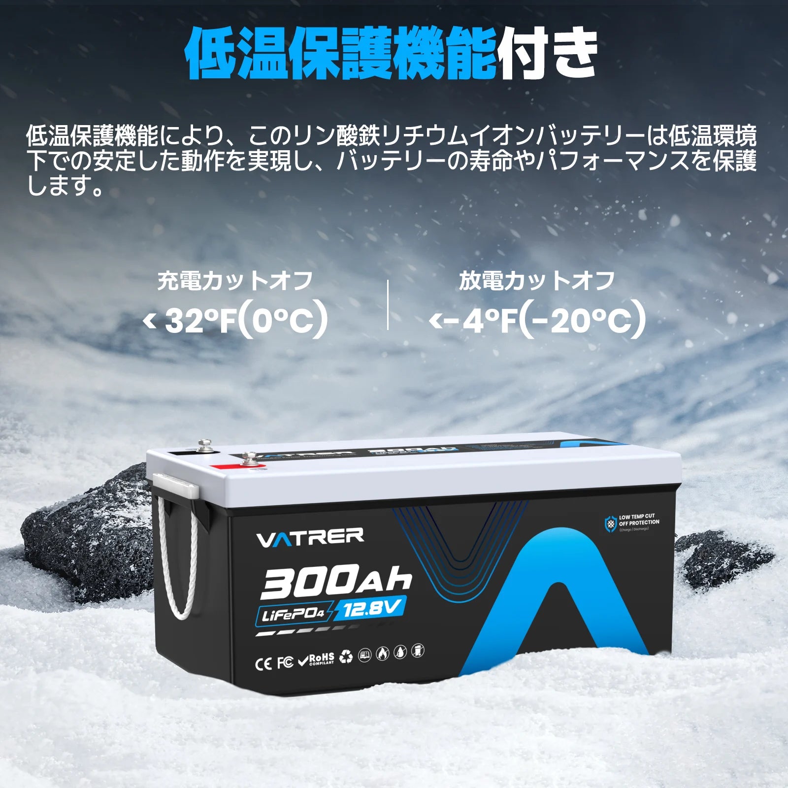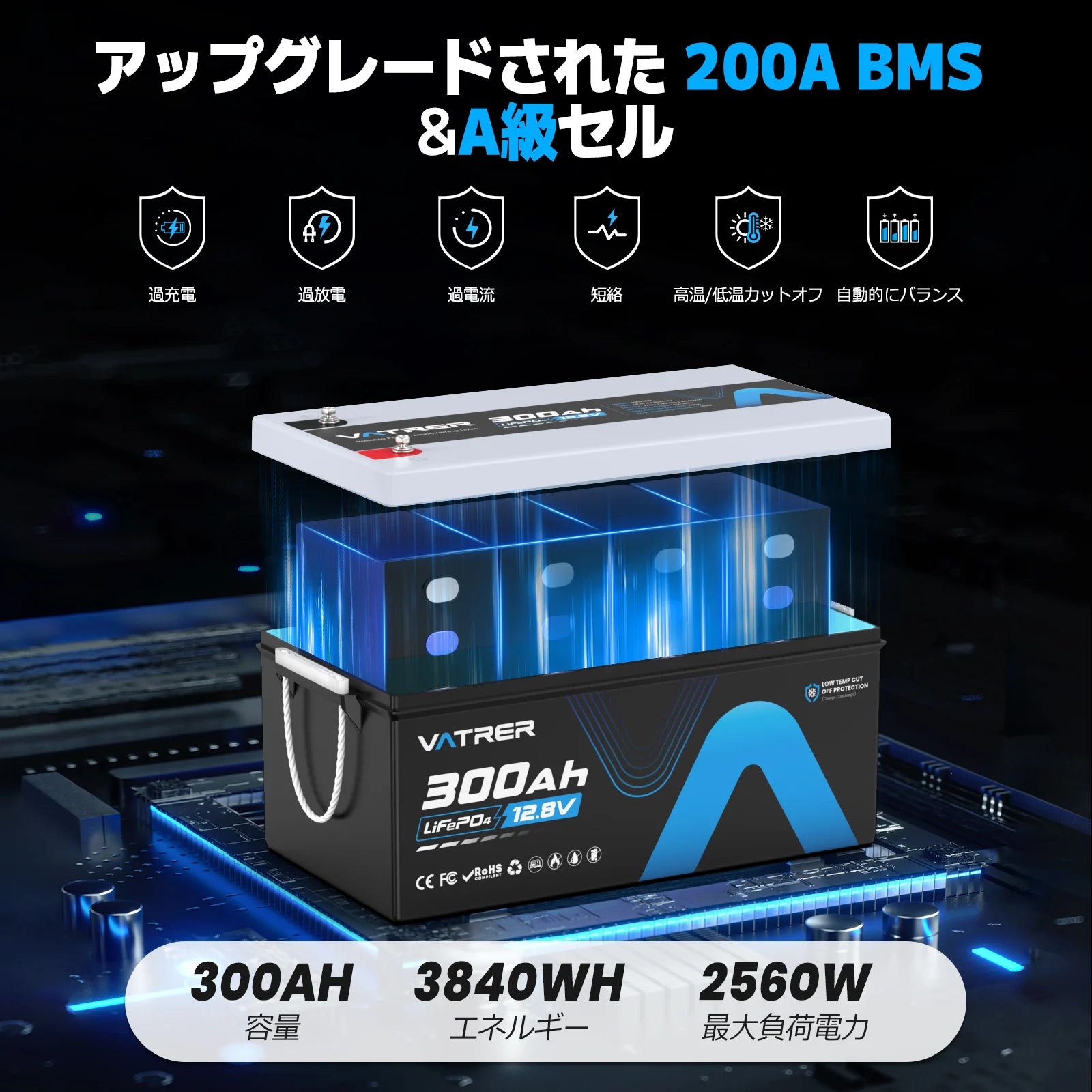 Vatrer 12V 300Ah 200A BMS LiFePO4 リチウムバッテリー JP