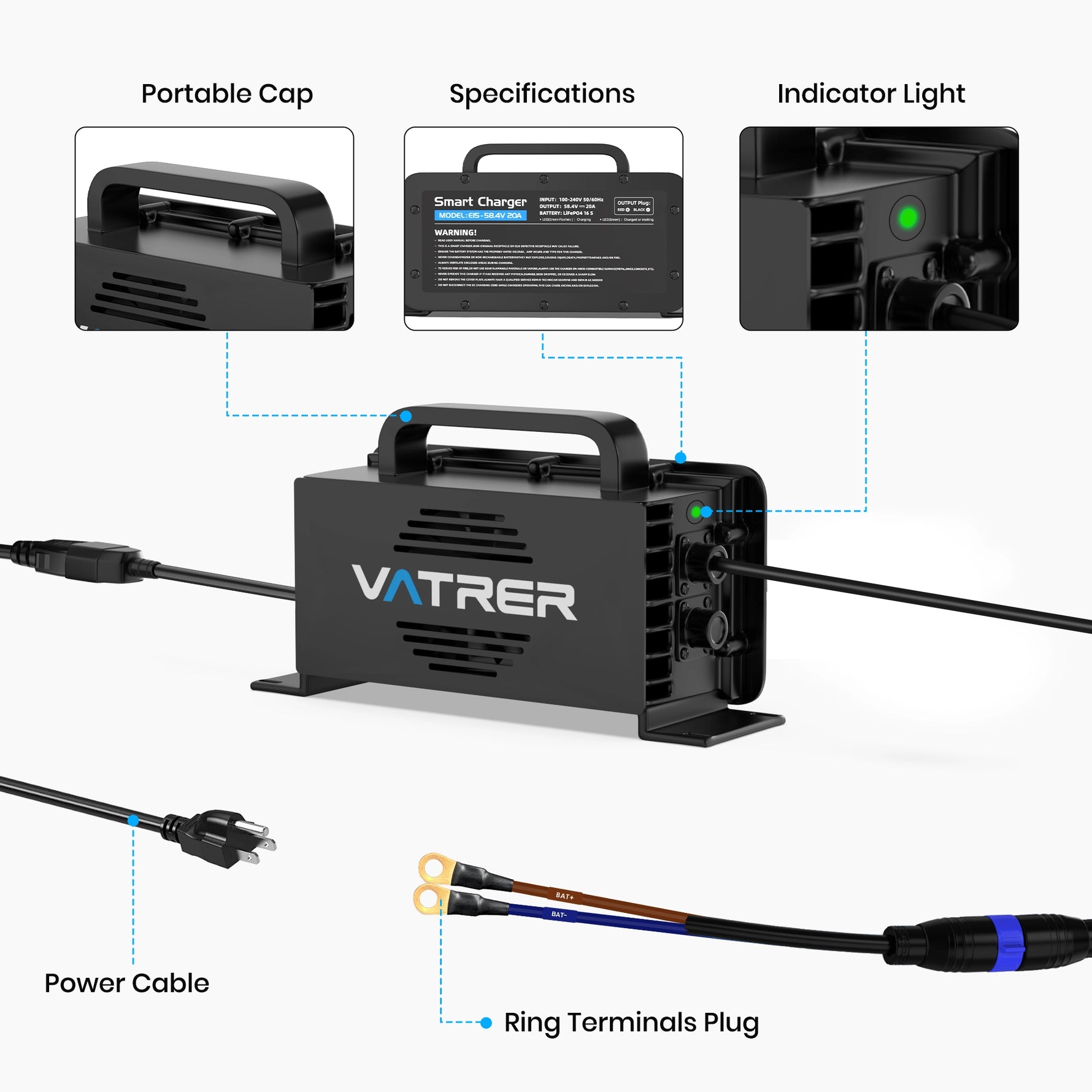 Vatrer 43.8V 25A Intelligent AC-DC 36V Golf Cart Battery Charger
