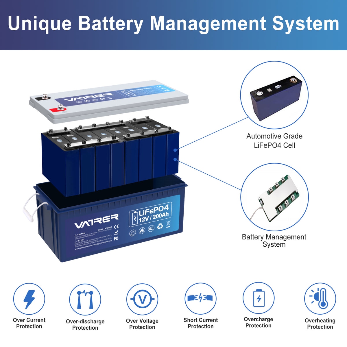 Vatrer 12V 200Ah LiFePO4 Lithium Battery, a game-changer in the world of energy storage. Designed with cutting-edge technology and built to last, this battery offers unrivaled performance and reliability. Let's explore the exceptional features of the Vatrer LiFePO4 Lithium Battery.