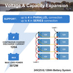 【Advanced Lithium Iron Technology】 30Ah lithium battery manufactured by Automotive Grade LiFePO4 Cells with higher energy density, more stable performance and greater power. Excellent cycle performance, fast charging and discharging, charging efficiency up to 100%, and high output power. Without memory effect, no matter what state the battery is, it can be used as soon as it is charged. Supporting expansion for up to 4 series & 4 parallel and suitable for electric energy storage.