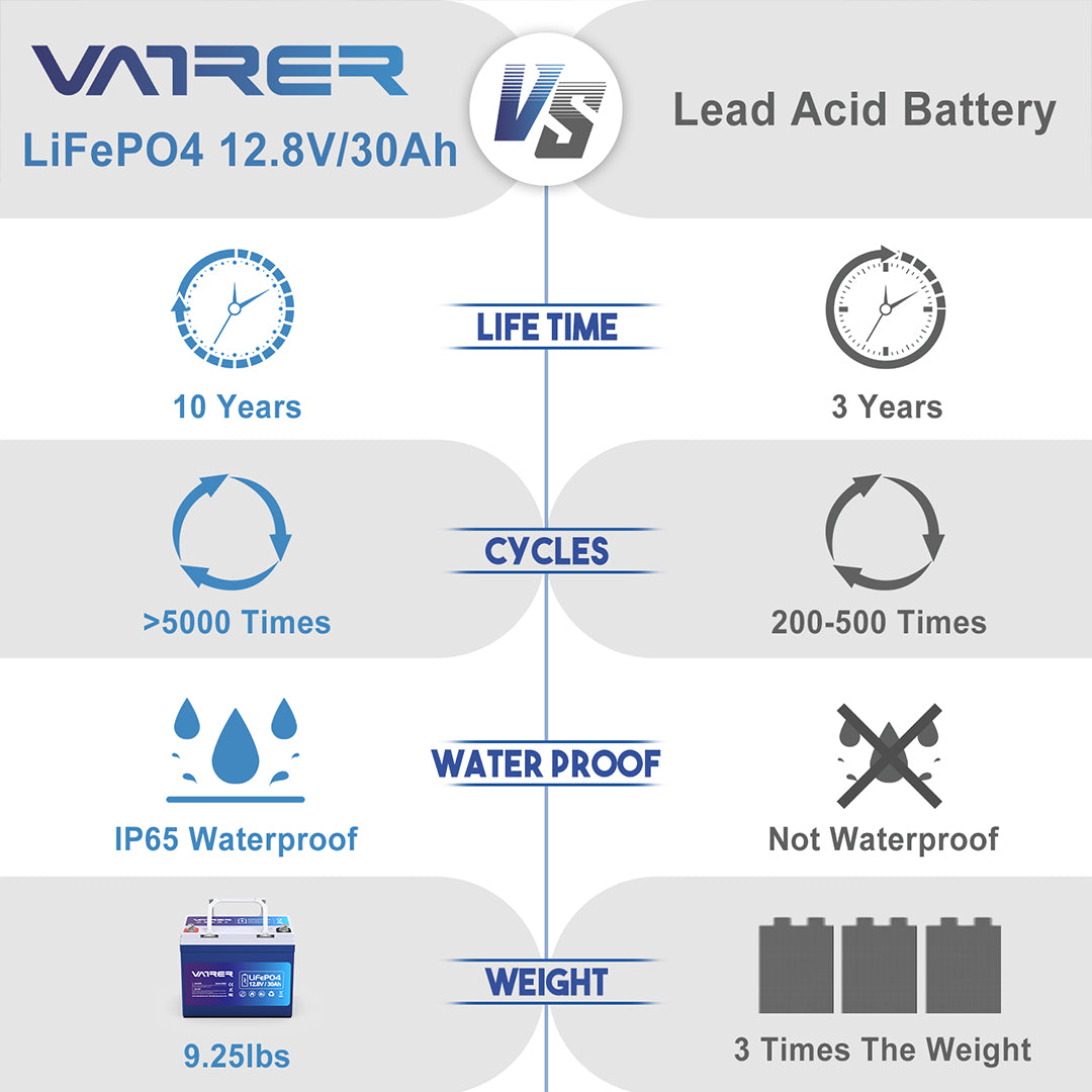 Discover the power of superior performance and longevity with the Vatrer 12V 30Ah LiFePO4 Lithium Battery. This exceptional battery is designed to deliver unmatched reliability and endurance, making it the perfect choice for a wide range of applications. Let's explore the remarkable features of the Vatrer Battery and how it enhances your power requirements: