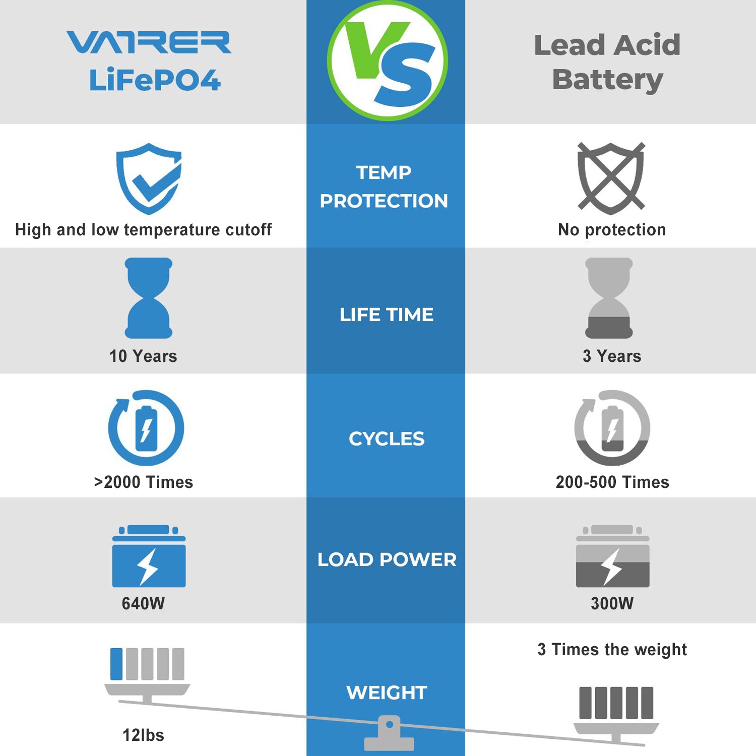 Weighing only 12lbs, the Vatrer Deep Cycle Battery is just one-third the weight of a lead-acid battery with the same capacity. Its lightweight and compact design make it easy to transport and install, providing flexibility in various applications where weight and space are critical considerations.