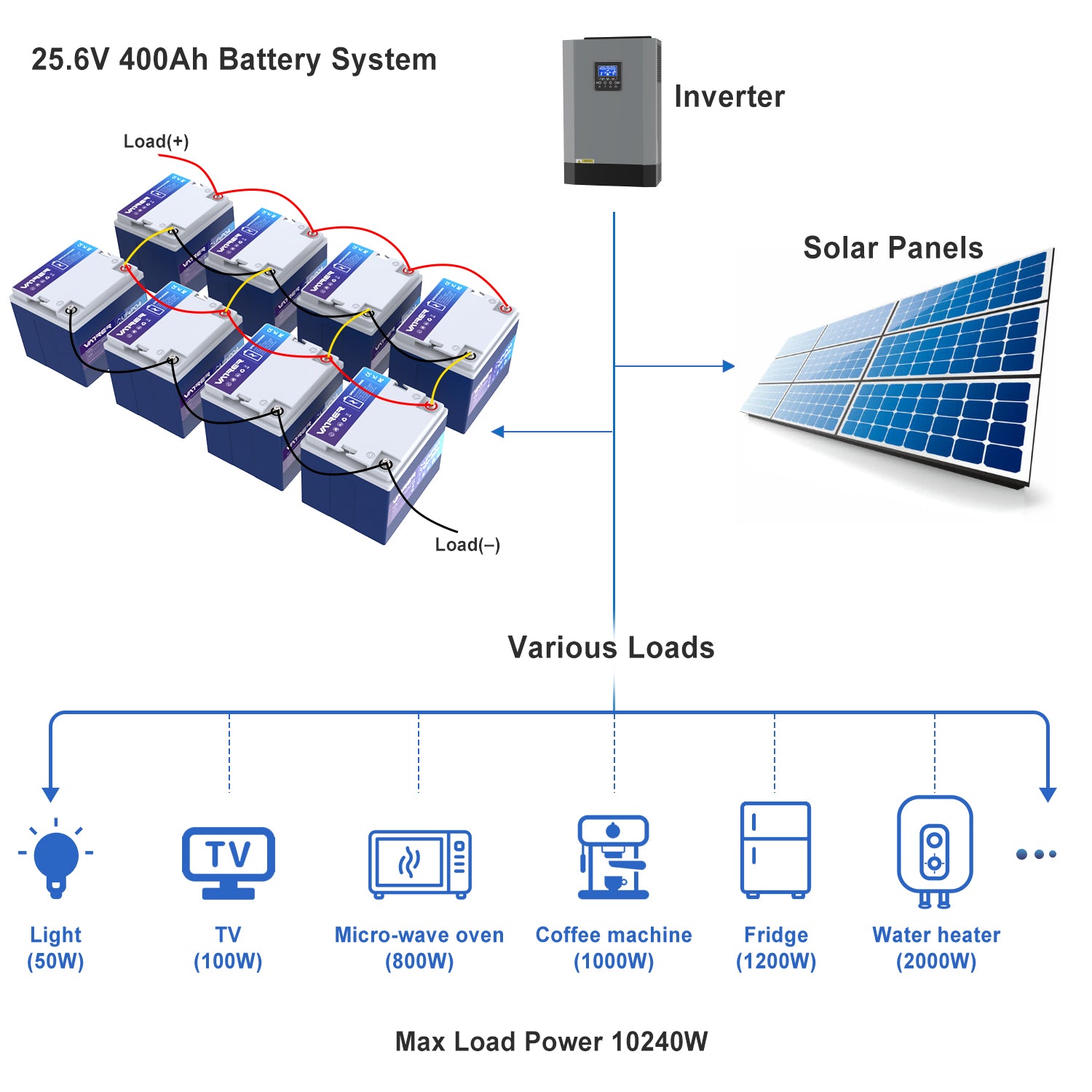lithium battery manufactured by Automotive Grade LiFePO4 Cells with higher energy density, no memory effect, more stable performance and greater power. Excellent cycle performance, fast charging and discharging, charging efficiency up to 100%, and high output power. Supporting IP65 waterproof and battery expansion for up to 4 series & 4 parallel and suitable for electric energy storage.
