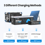 【Fast Charging & Multiple Applications】 Supports 3 charging methods: solar, generator, and 14.6V 70A LiFePO4 charger. The 12.8V 600Ah LiFePO4 battery can be fully charged about 5 hours by a Solar Panel -MPPT (1920W), faster than traditional lead-acid batteries. Ideal for multiple applications such as RVs, marine equipment, garden tools, off-grid, and various outdoor electronics.