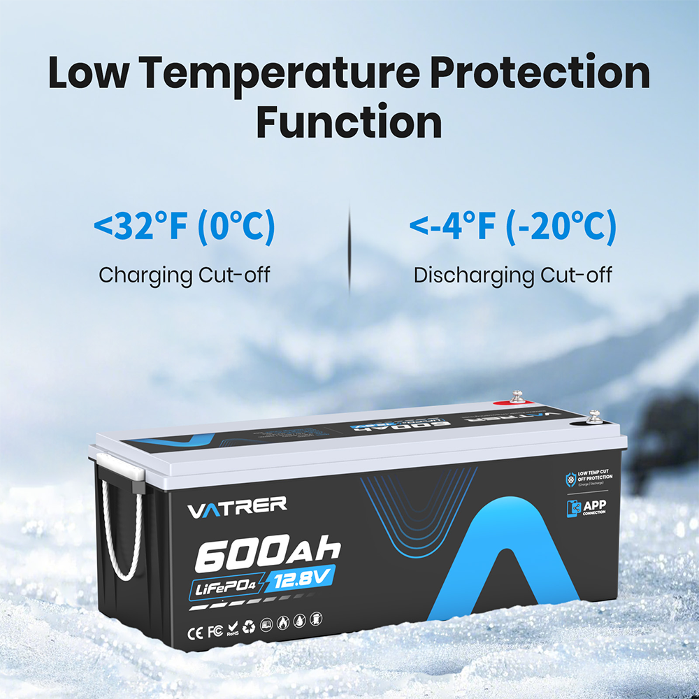 【High / Low Temp Cutoff】 With high temp cutting off prevents charging over 167 °F (75°C). And Low temp cutoff protection prevents battery damage in low-temperature environments. The battery can operate from as low as - 4℉ (-20℃) to as high as 140℉ (60℃).