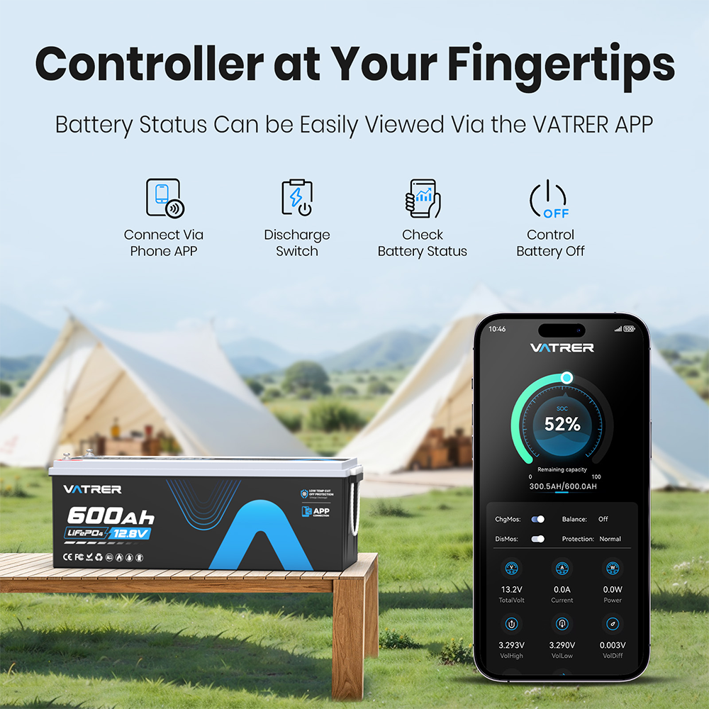 Vatrer 12V 600Ah Bluetooth Lithium RV Battery