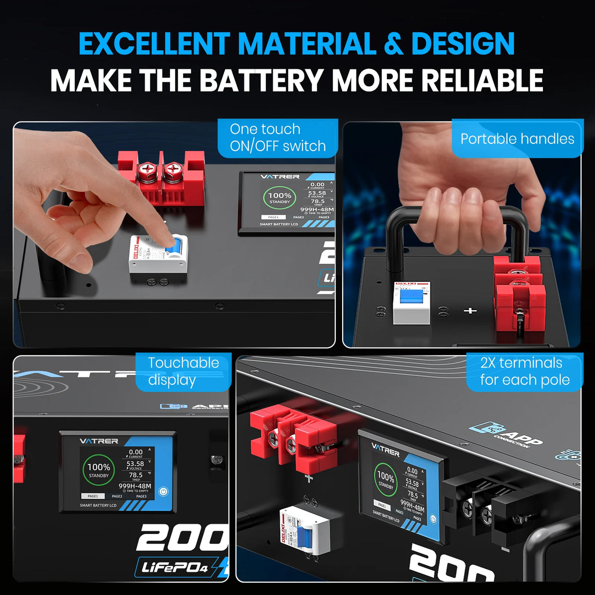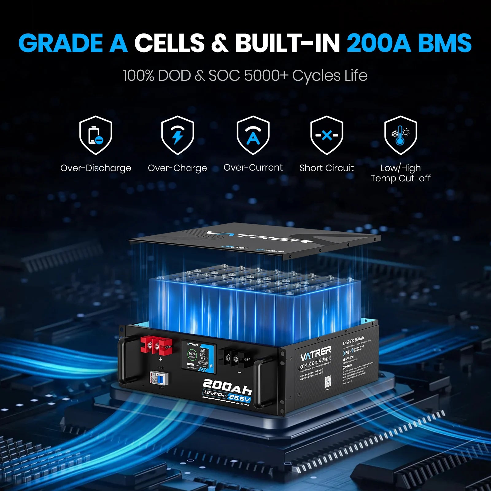 Vatrer 24V 200Ah Heated Solar Lithium Battery