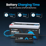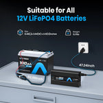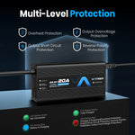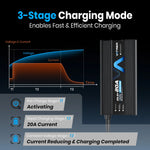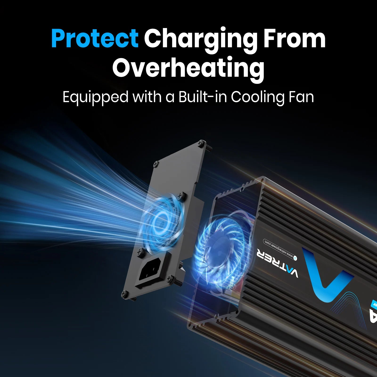 【Wide-Voltage and Good Heat Dissipation】 The 29.2V 20A lithium battery charger has a wide input voltage range, incorporates multiple protection features, and boasts high reliability. Built-in cooling fan, increasing heat dissipation function. The 29.2V 20A LiFePO4 battery smart charger is designed for 24V LiFePO4 batteries. It maximizes lithium battery performance and extends the battery's lifespan.