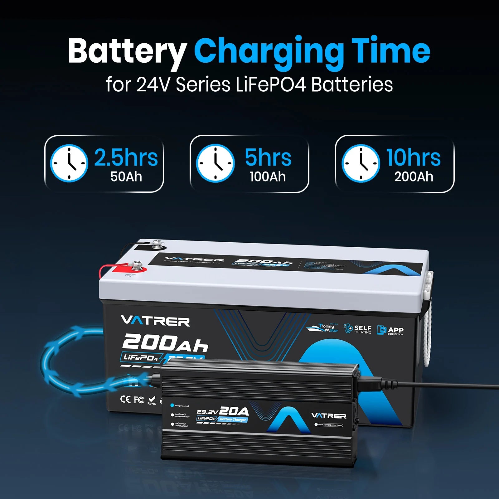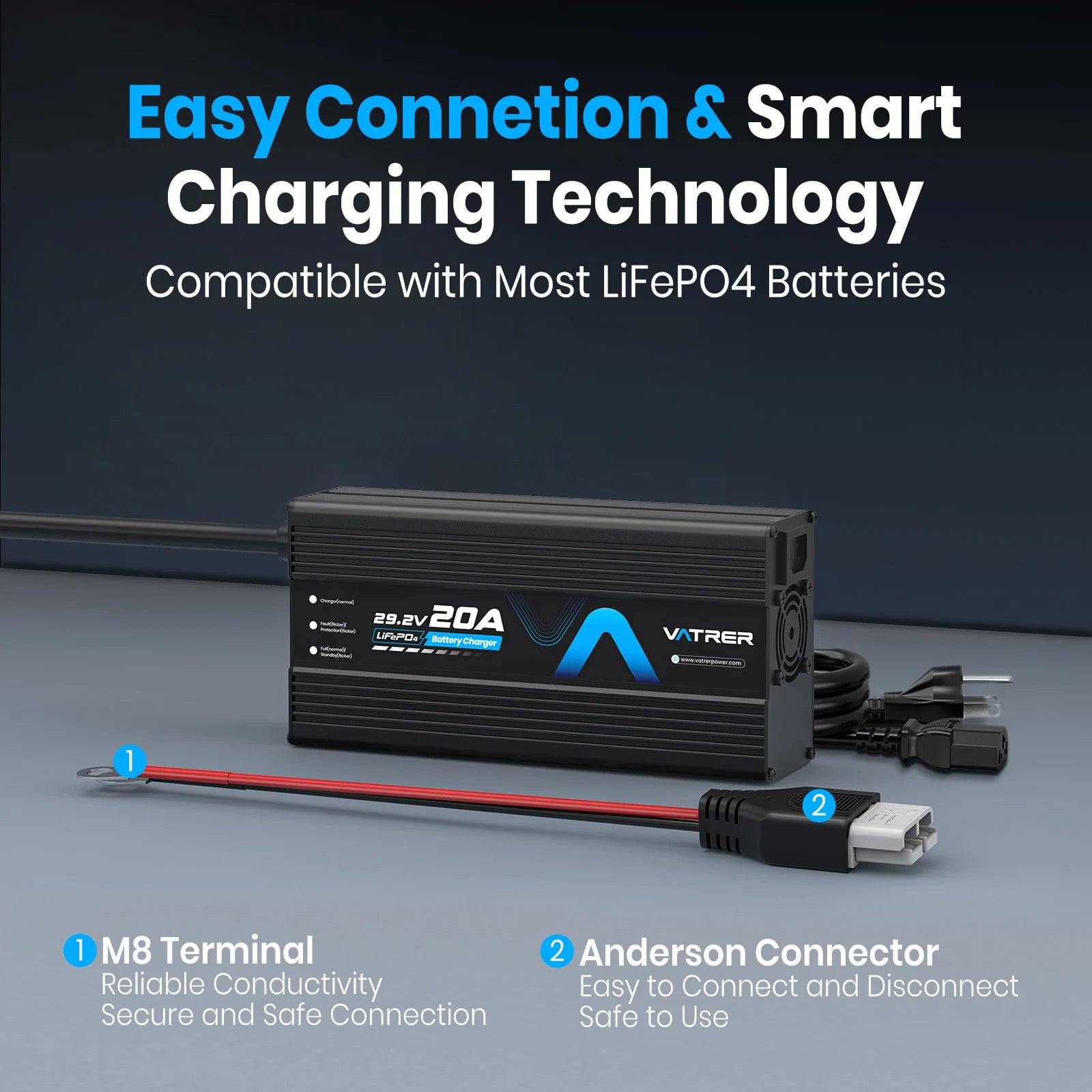 Vatrer 29.2V 20A Lithium Battery Charger AC-DC LiFePO4 Battery Charger for 24V Rechargeable Lithium LiFePO4 Battery