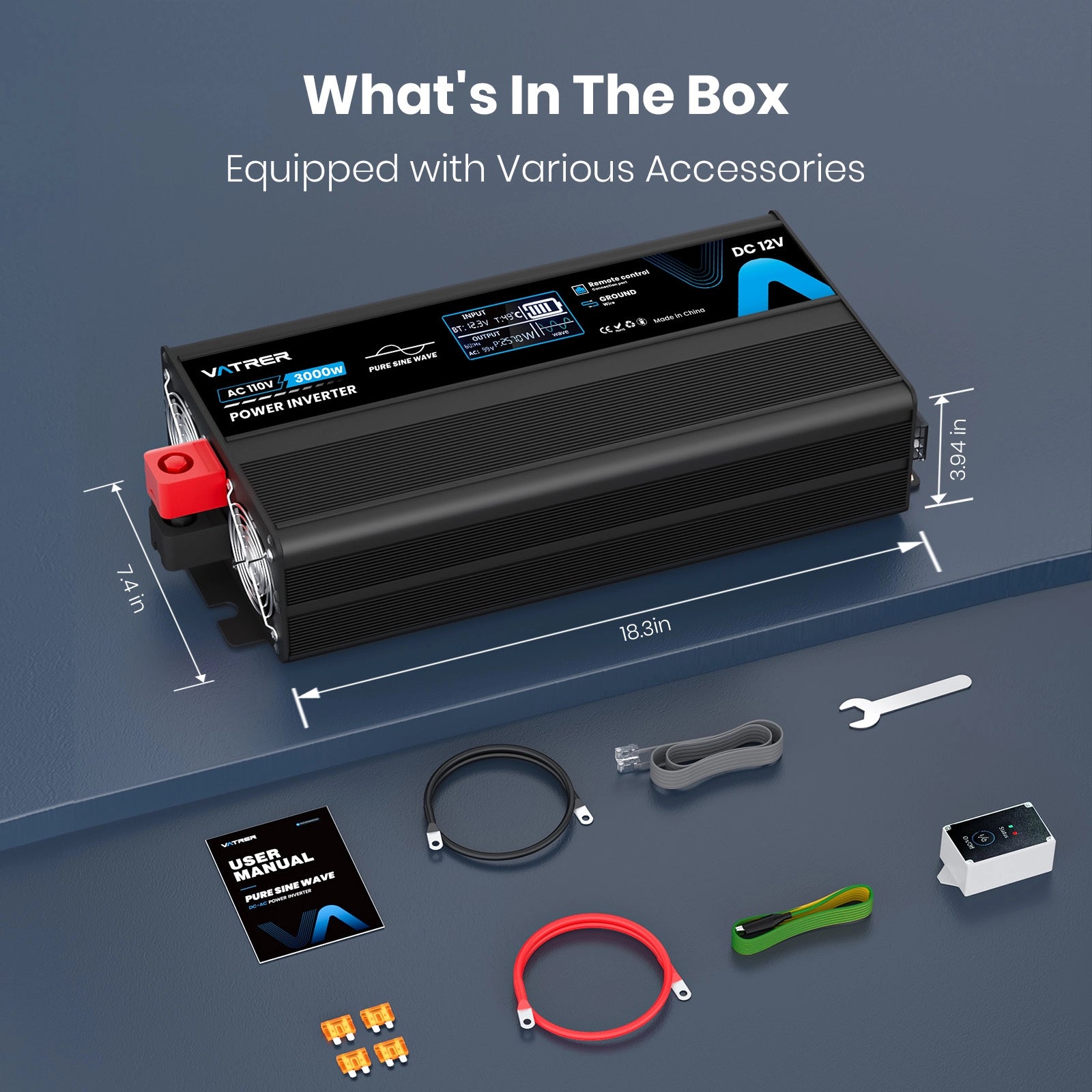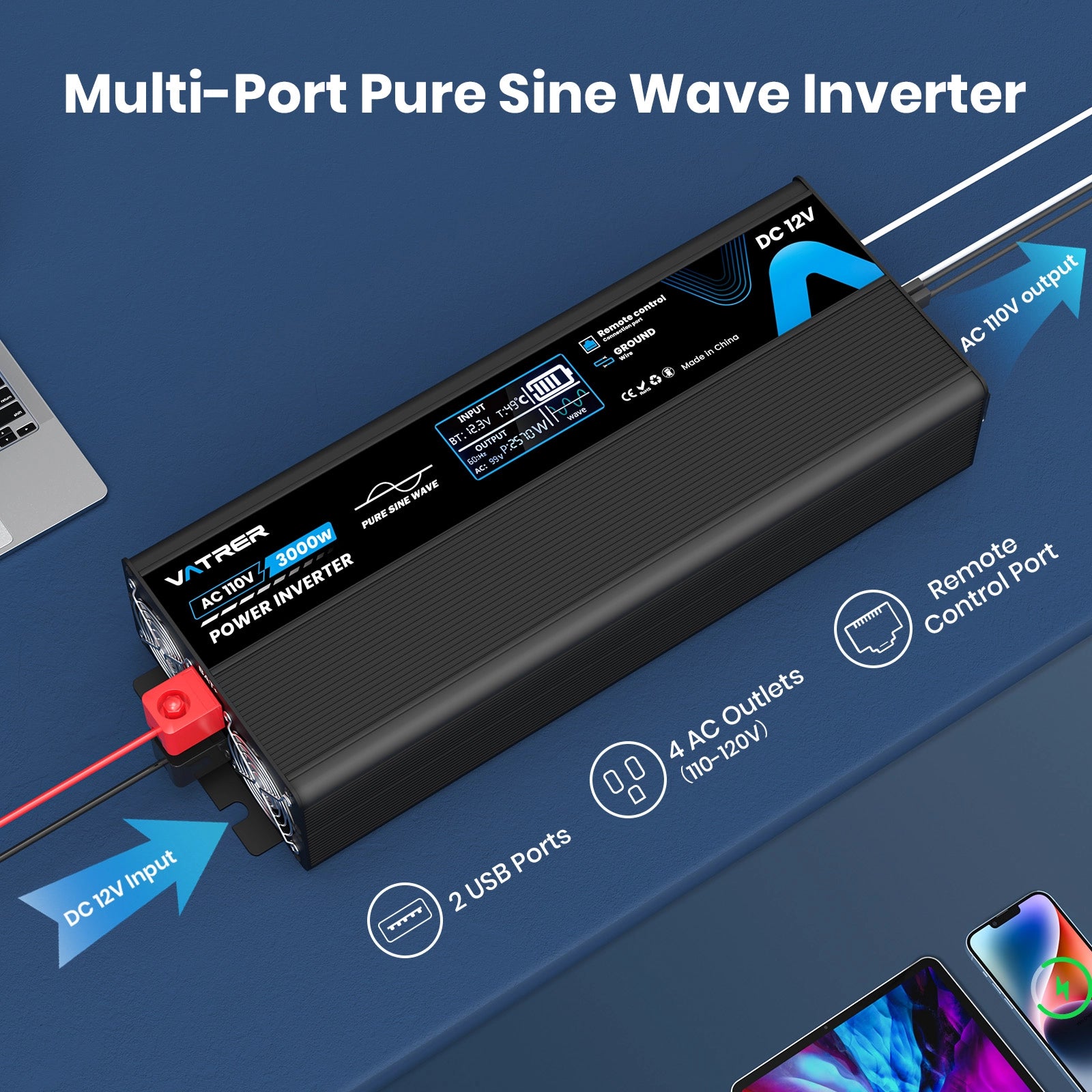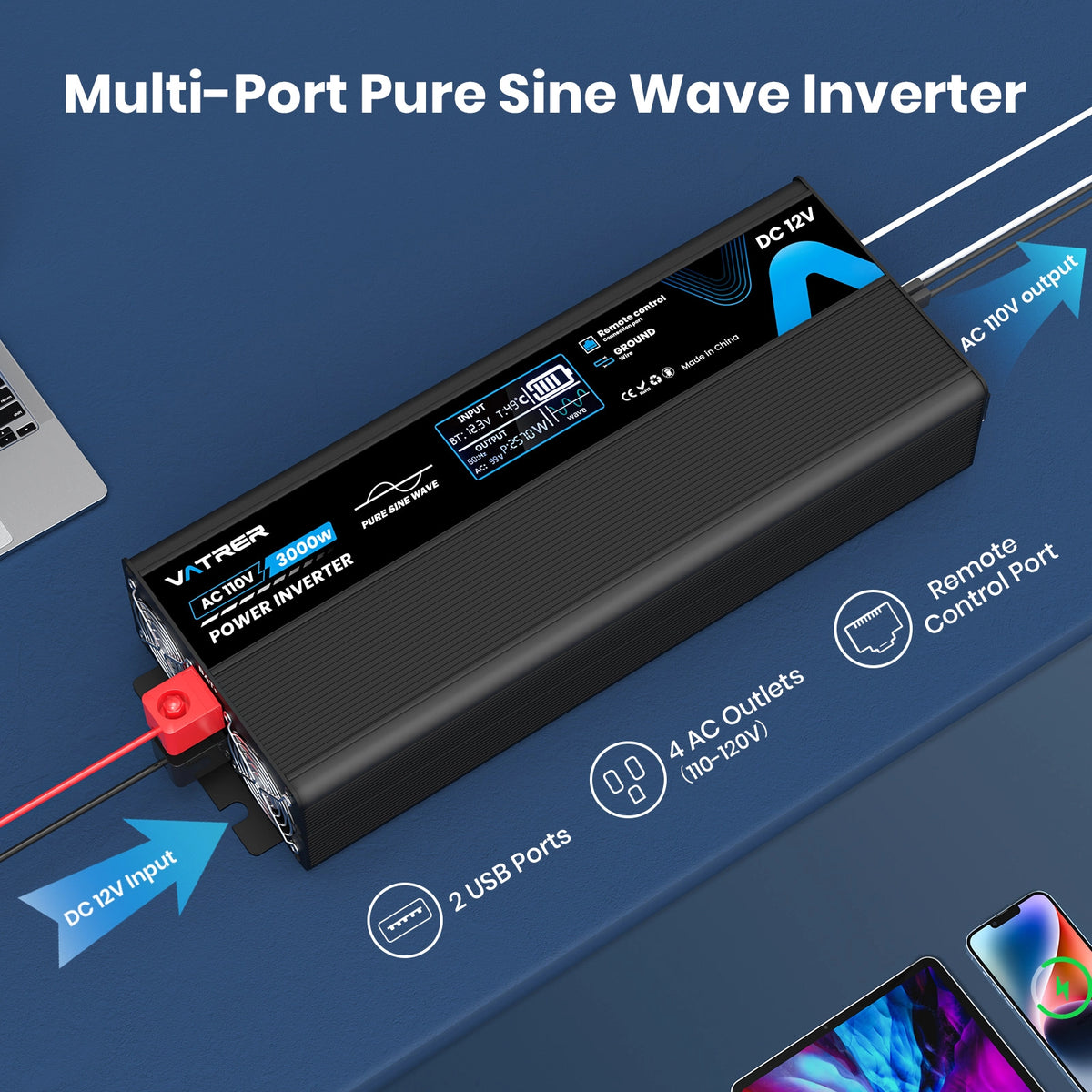 Vatrer 3000 Watt Pure Sine Wave Inverter 12V DC to 110V/120V AC Power Inverter