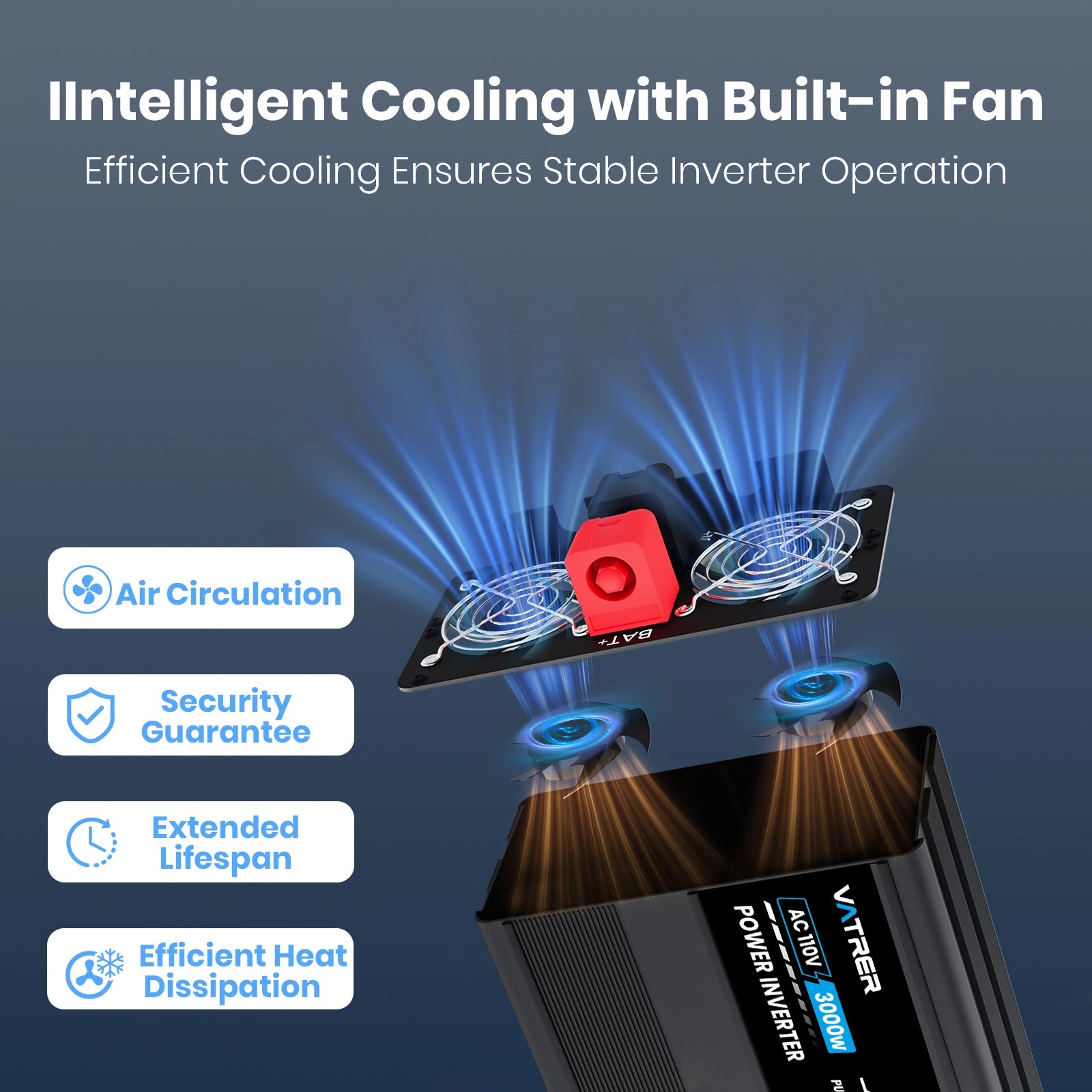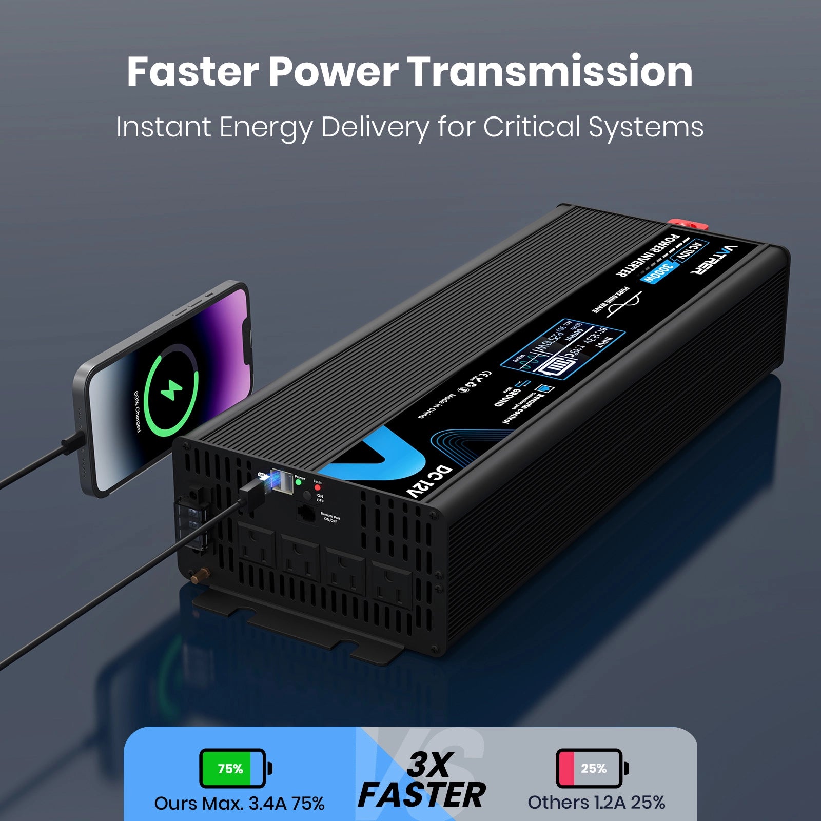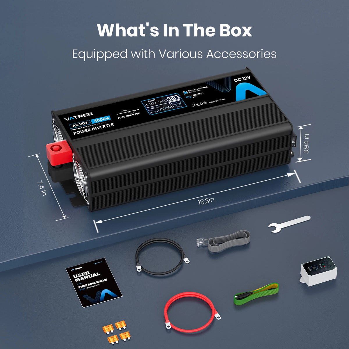 Vatrer 3000 Watt Pure Sine Wave Inverter 12V DC to 110V/120V AC Power Inverter
