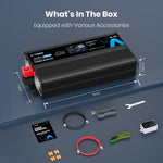 【3000 Watt Pure Sine Wave Inverter】This pure sine wave inverter has an efficiency of 85% to 95%, which significantly reduces conversion loss and protects electronic equipment (microwaves, laptops, LEDs, etc.) from damage. The power inverter converts 12V to 110V/120V and comes with two high-quality, thickened battery cables (black and red), which effectively enhance the safety of the inverter during use.