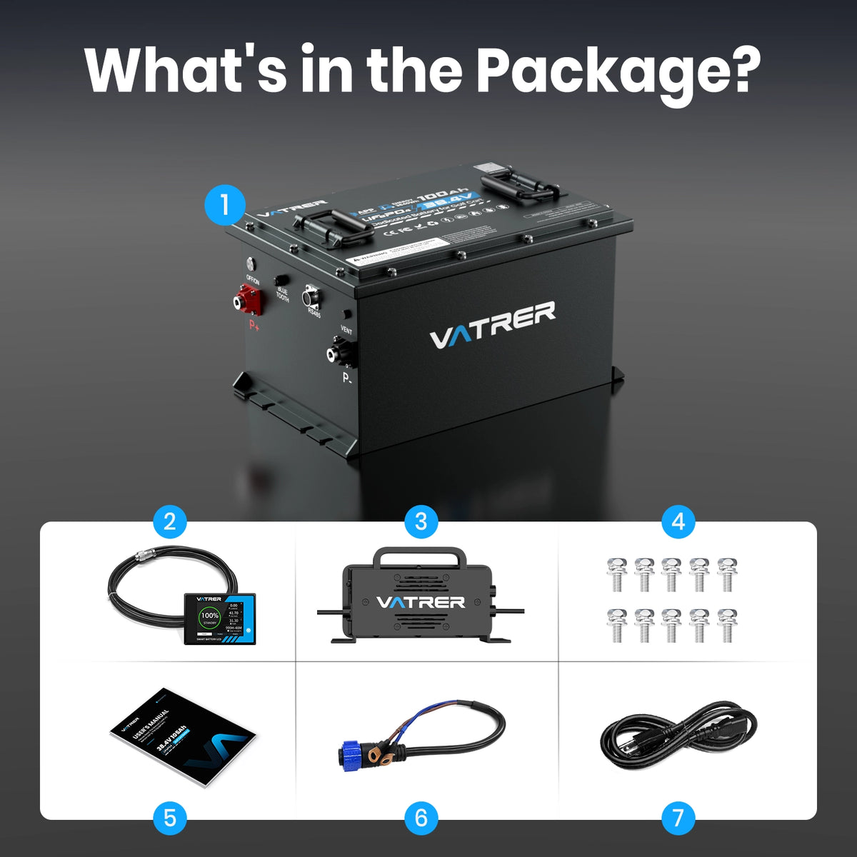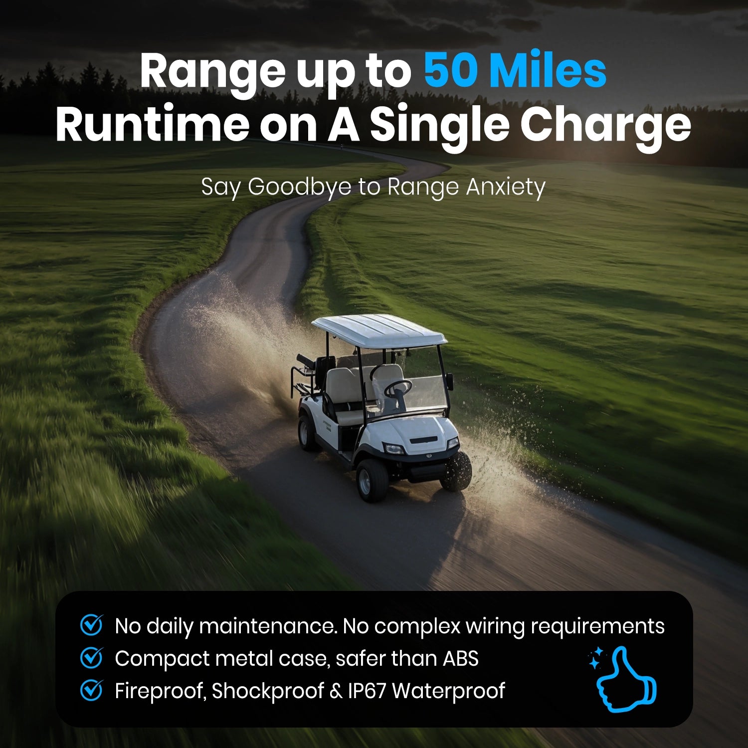 Unit price per- 50 Miles Range per Charge: The Vatrer 36V 100Ah Lithium Golf Cart Battery Kit delivers up to 50 miles on a single charge, perfect for long rounds or multi-course days.