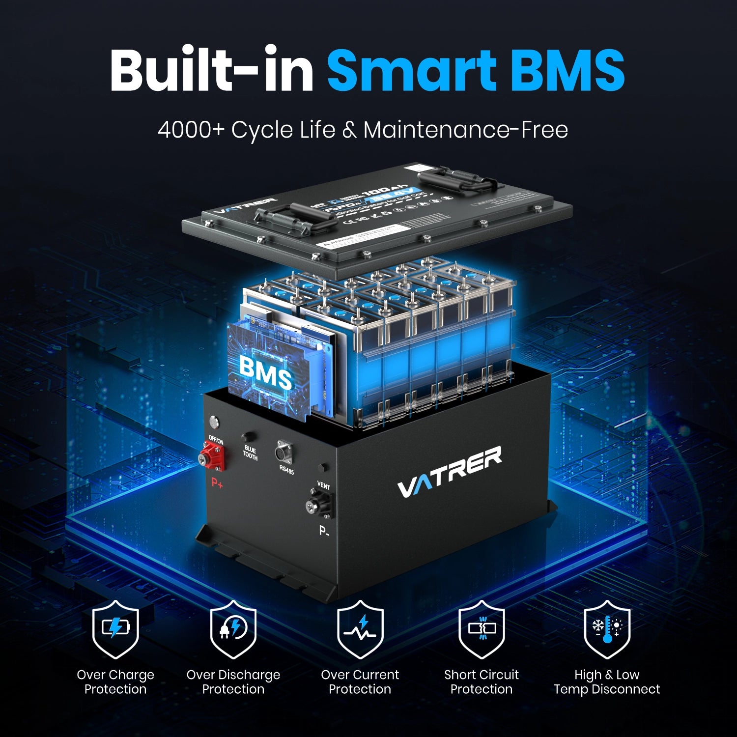 Unlike lead-acid batteries, this Vatrer 100Ah golf cart battery is eco-friendly but should not be thrown in regular trash. Contact local recycling centers or Vatrer’s support for guidance on proper disposal of lithium batteries. This ensures compliance with environmental regulations and supports sustainable use of your golf cart battery.
