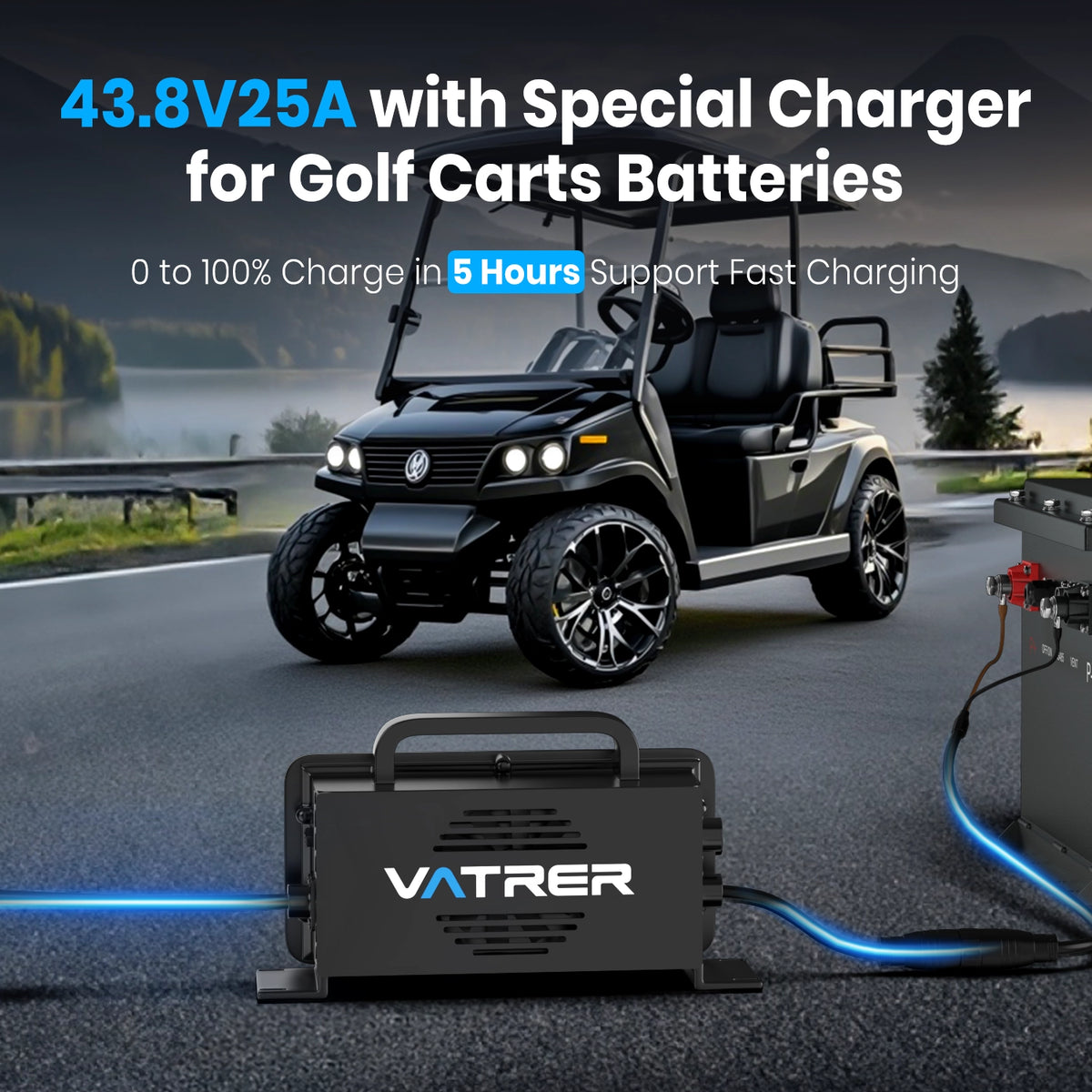 The Vatrer 36V 100Ah golf cart battery kit with the included 43.8V 25A dedicated charger, you can go from 0 to 100% in just 5 hours. This fast charging cuts downtime, letting you get back on the course quickly compared to the 8-10 hours lead-acid batteries often need. It's a time-saver for busy golfers or fleet managers.