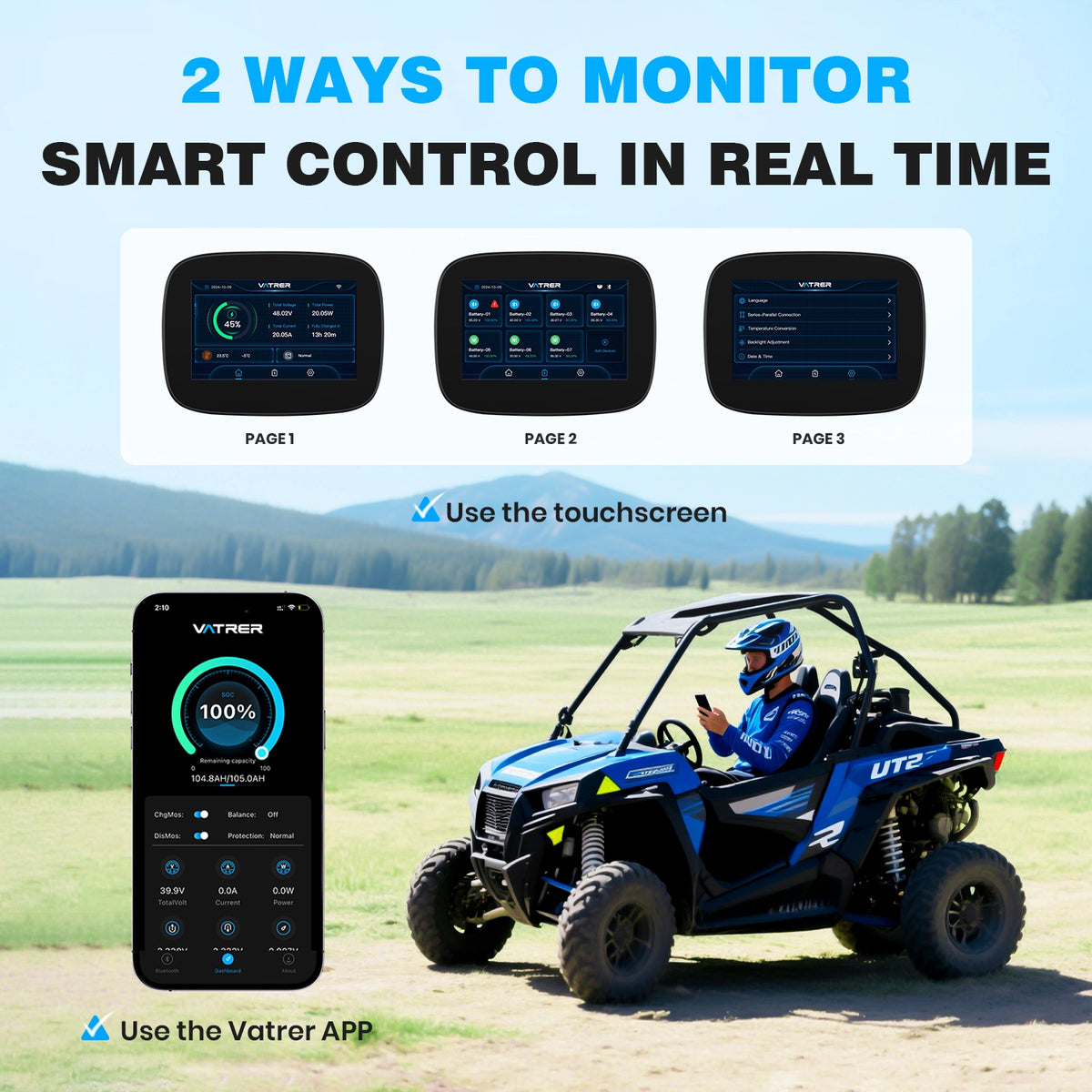 - 98-Foot Bluetooth Range: Monitor real-time data up to 98 feet away with the Vatrer Bluetooth App for convenient UTV/ATV management.