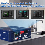 Experience the next level of monitoring and control with the Vatrer 48V 100AH LiFePO4 Server Rack Lithium Solar Battery, featuring a Touchable Smart Display and Mobile APP. Stay connected and stay informed as you effortlessly track the performance of your battery and manage your solar energy system with ease.