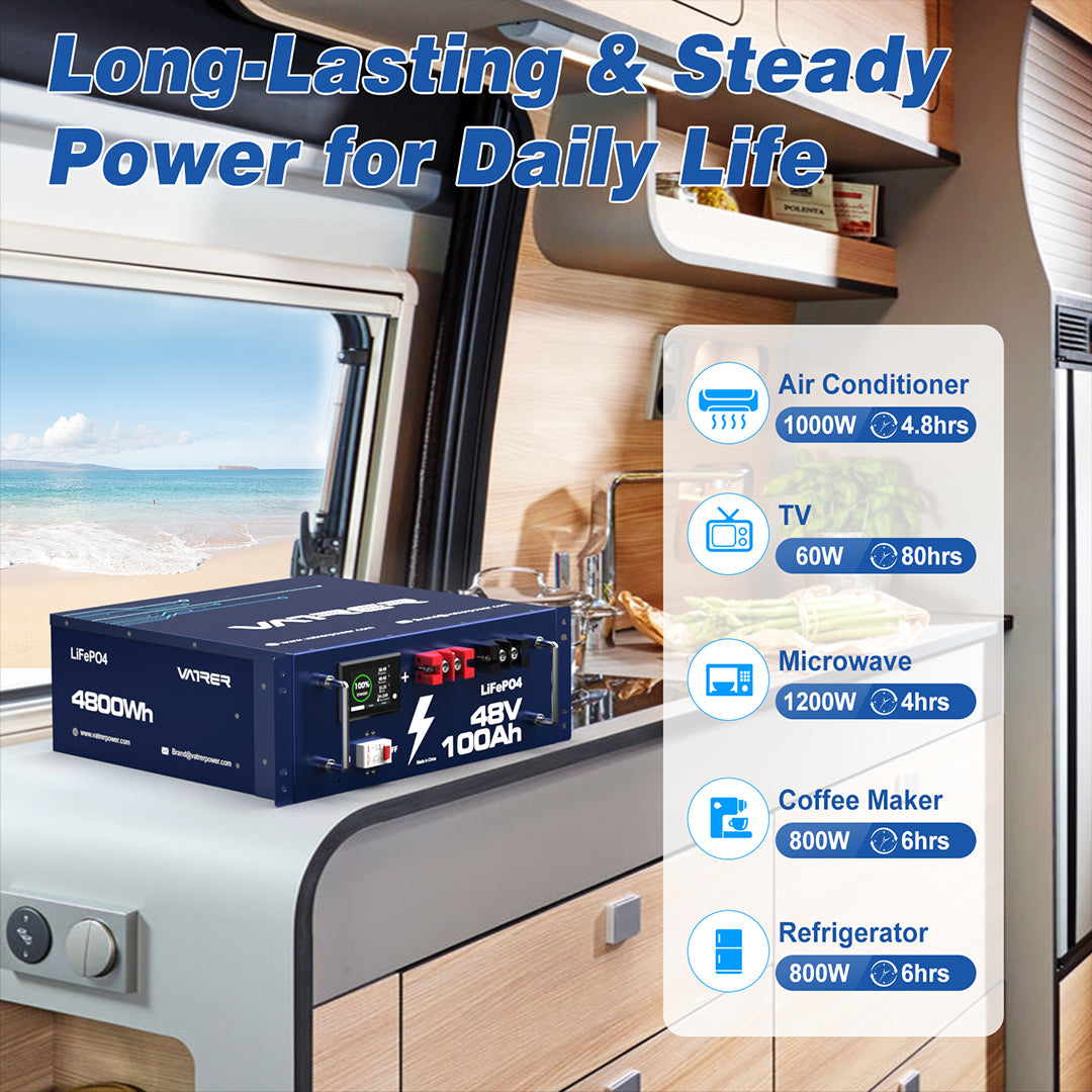 Enhance your RV travels with the Vatrer LiFePO4 Server Rack Lithium Battery. Enjoy the convenience of powering appliances, electronics, and other essentials during your road trips, ensuring a comfortable and efficient journey.