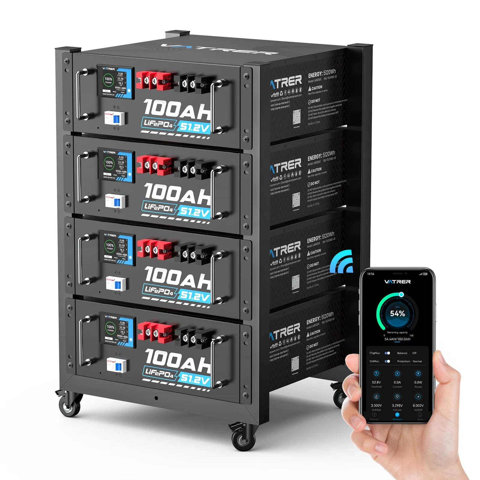 - High-Capacity Energy Storage: Delivers a robust 5.12kWh capacity with 5120W power output, equivalent to four 12V 100Ah LiFePO4 batteries in series, ideal for solar, RV, or off-grid systems.